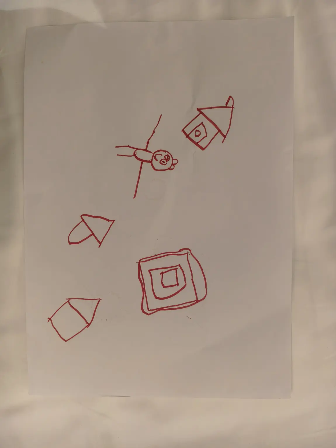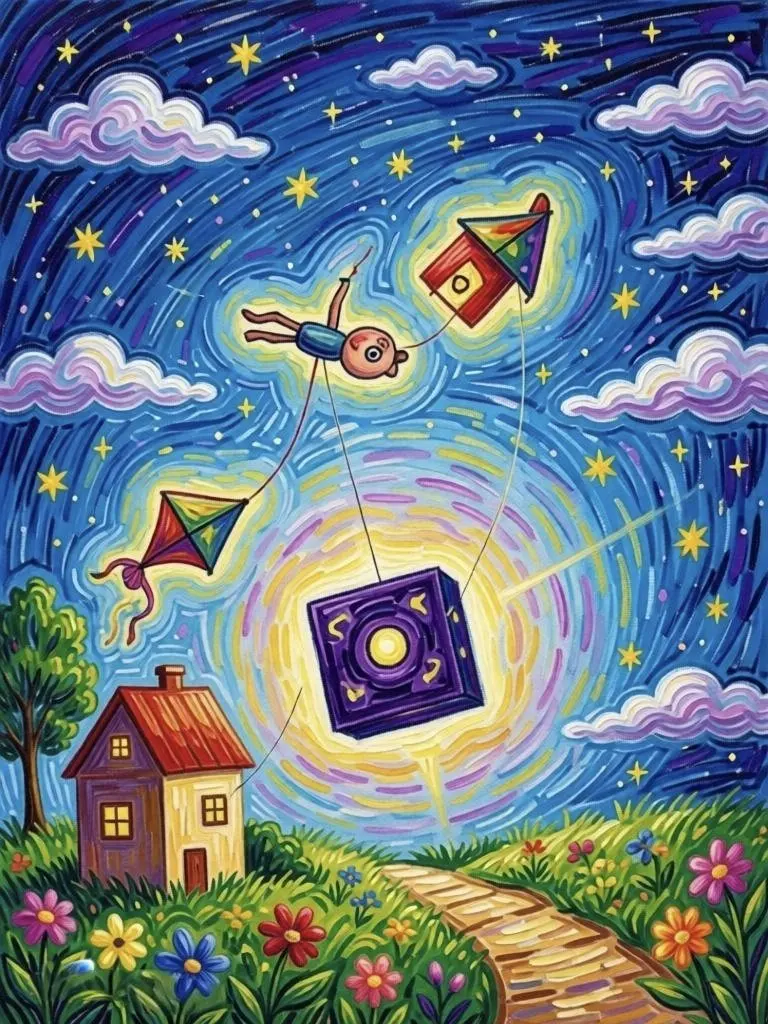 宝贝随手画的简笔画,歪歪扭扭的小人、小房子和爱心,每一笔都是她眼里的世界。还有那幅充满想象力的星空画作,像把整个春日的浪漫都揉进了色彩里,童真又治愈。