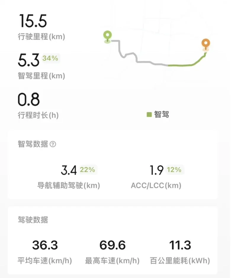 全程15.5 km,其中5.4km开启智能辅助驾驶,占比约34%;①导航辅助驾驶NGP:3.4 km;②ACC / LCC:1.9km。随着小鹏AI智驾不断迭代升级,虽然我的胖虎智驾没有更新最新版本,但现有的辅助驾驶也确实感觉越来越聪明、顺滑,路况识别精准跟车平稳,城市道路轻松又省心,真正解放双脚,让春日出行更轻松、更自由。