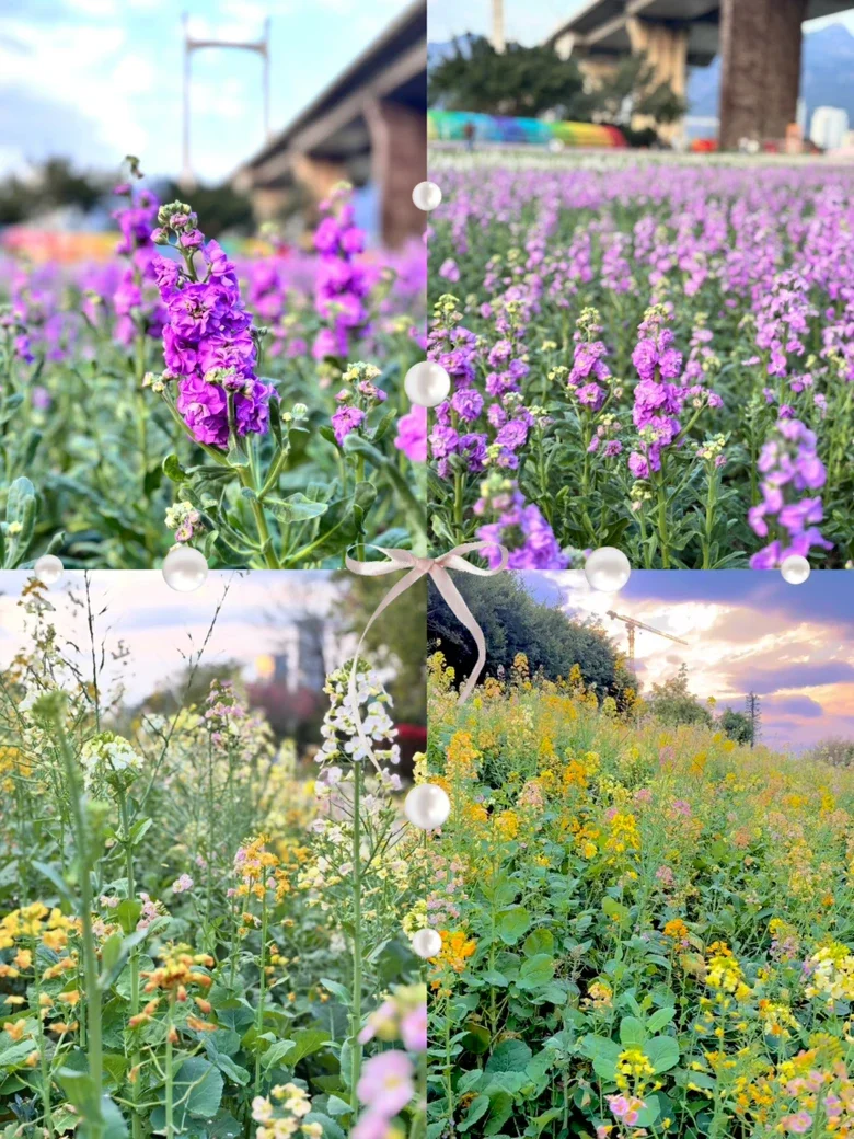 一进公园,就被满眼春色治愈。大片金黄油菜花随风摇曳,搭配浪漫梦幻的紫罗兰,层层叠叠、香气清新,随手一拍都是春日大片。