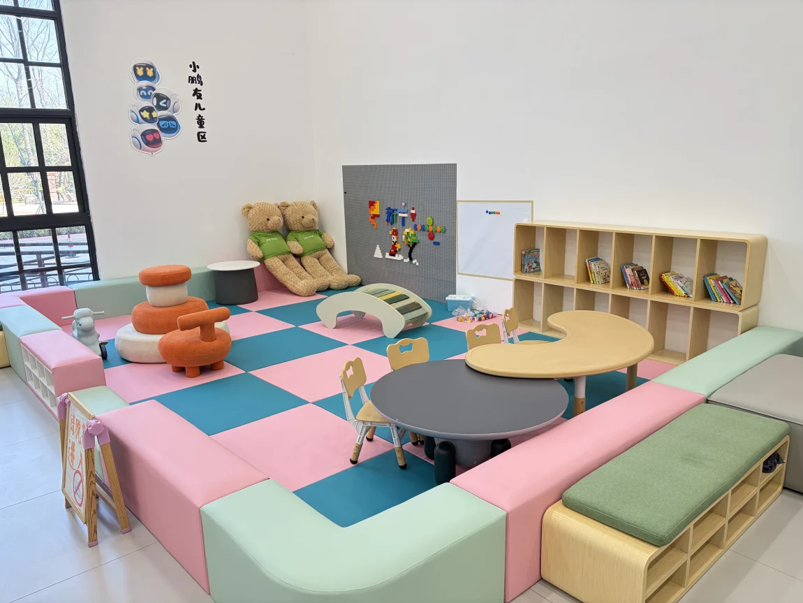 其中包含客户休息区、新车交付区、小鹏精品展示区、以及儿童游玩区等功能区域。我们精心布置了40组客休座位。您可以在这里点上一杯咖啡,在舒缓的音乐中,悠闲地完成提车前的准备工作。