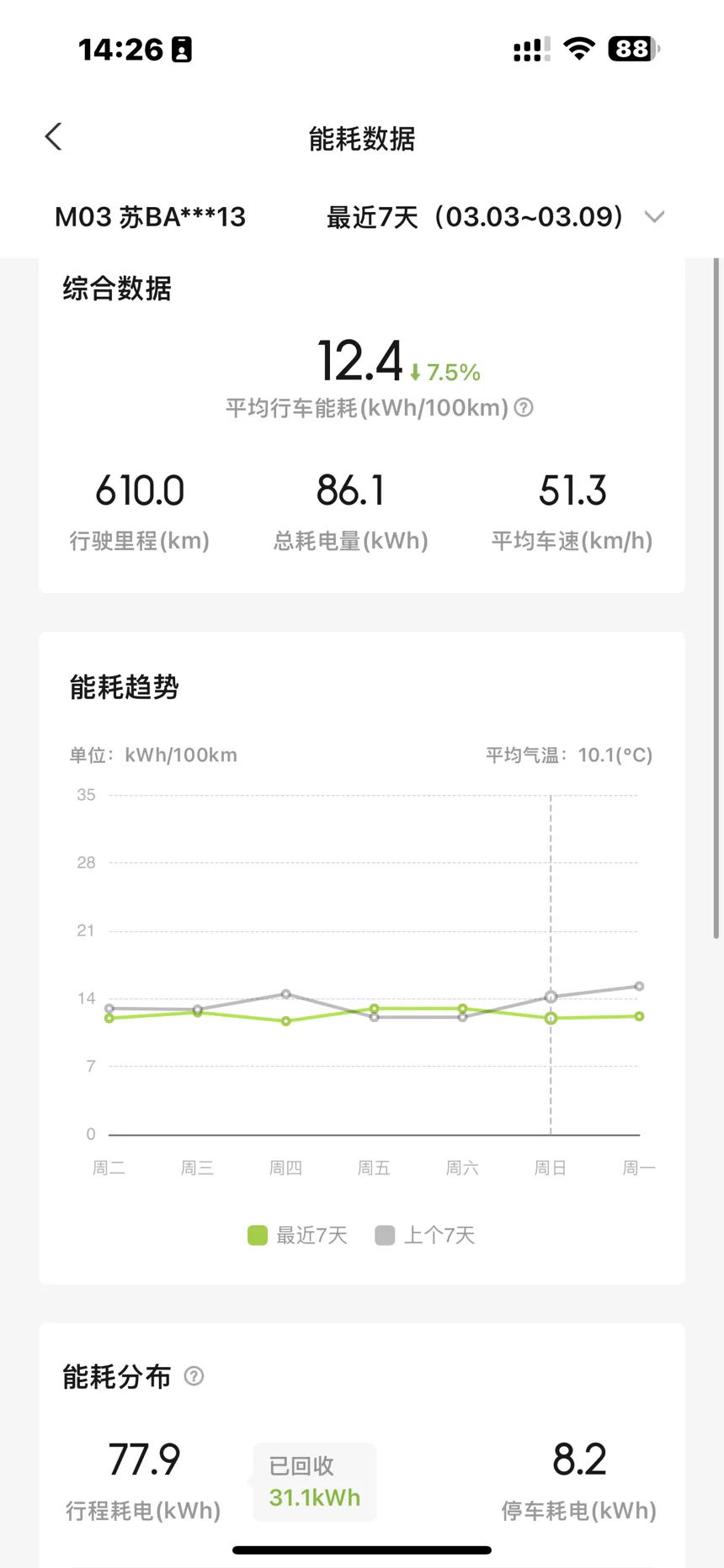 春日回暖,气温回升,现如今,我的电车🚗和上周比能耗明显降低了很多,平时通勤来回106公里两天半一充,现在充满电可以开4天,冬天充满电续航也就300公里,现在可以开400公里啦!果然电车🚗省电,还省钱,重点是还环保!