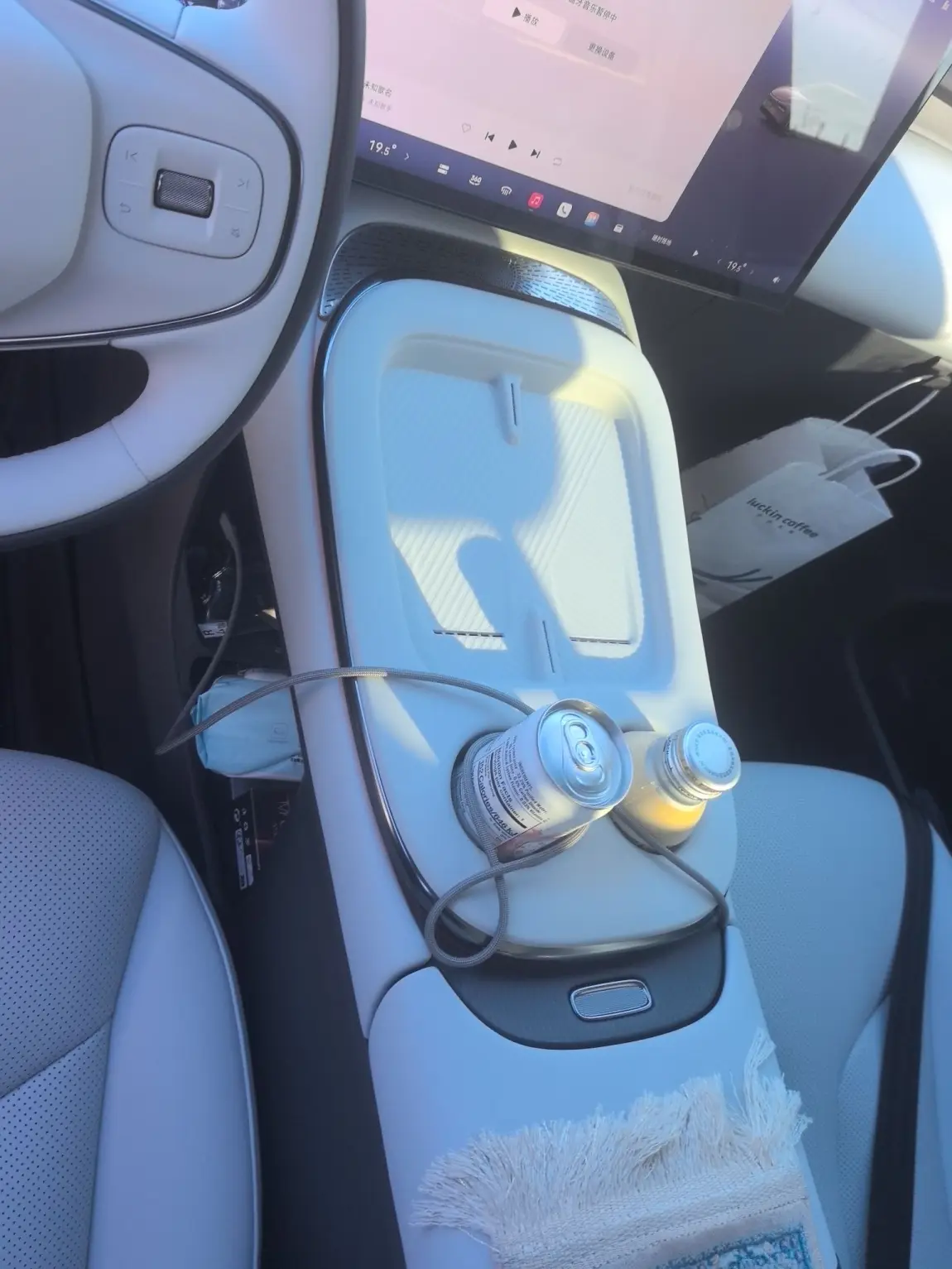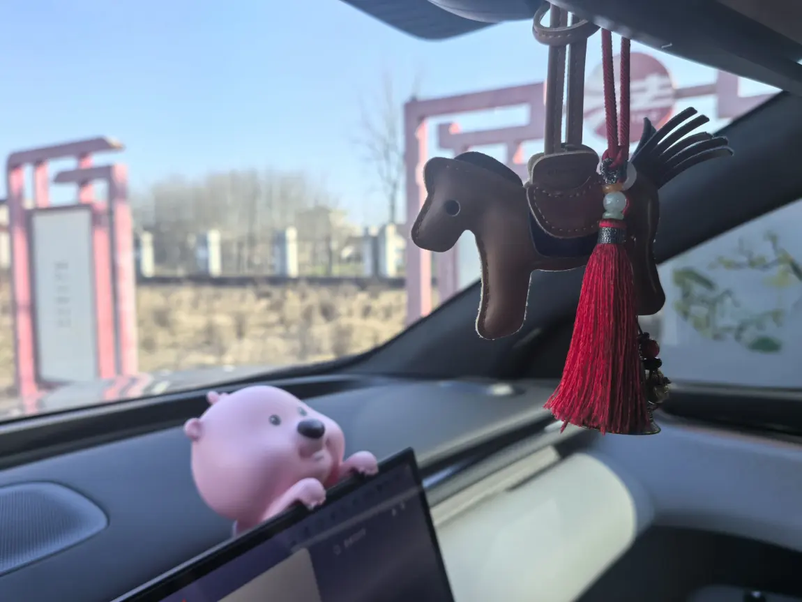 还有后视镜上那只皮质小马挂件,红流苏随着车身轻轻晃,是瑞幸送的「小马」。每次等红灯瞥见它,都觉得这趟路走得踏实又温柔,小小的仪式感,总能熨平生活里的褶皱。