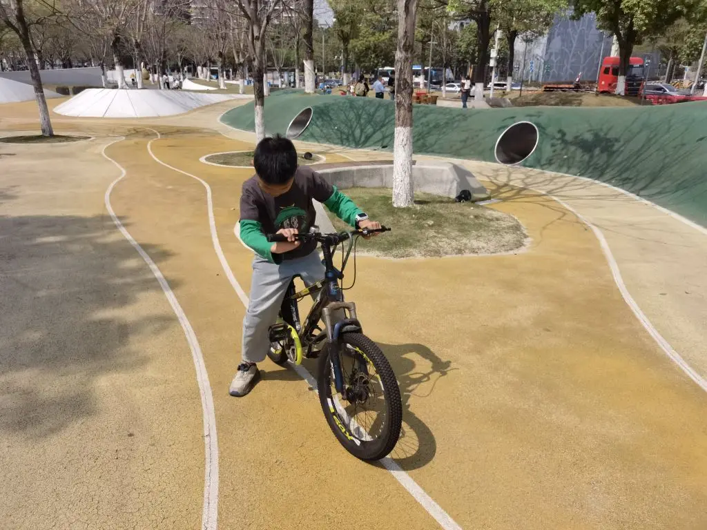 骑到半路,娃们会停下来蹲在路边看小鸟,或者追着蝴蝶跑,完全不用催,就让他们撒欢。阳光透过树叶洒在身上,暖乎乎的,连风都变得温柔起来,这种“慢下来”的感觉,真的太治愈了。