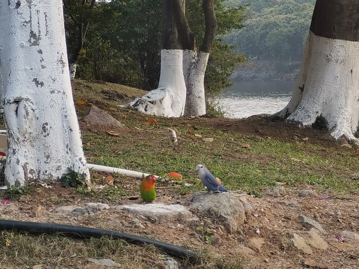 偶尔有几只彩色的小鸟从头顶飞过,远处的湖面泛着波光,时间好像在这里慢了下来,连手机都不想碰,只想好好享受这片刻的宁静。