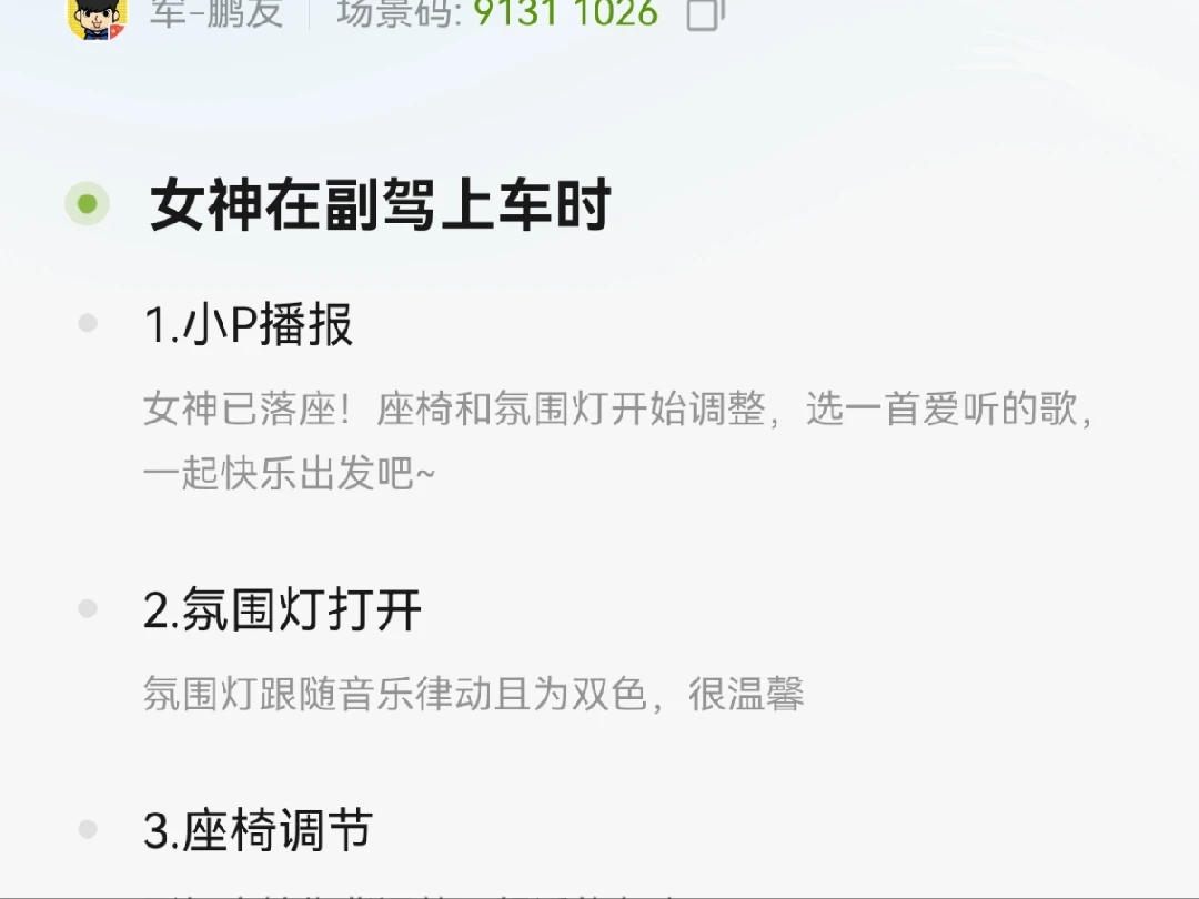 小P专属播报:上车时,语音助手小P会温柔问候:“女神,今天您上车的模样超飒~”,瞬间提升心情。