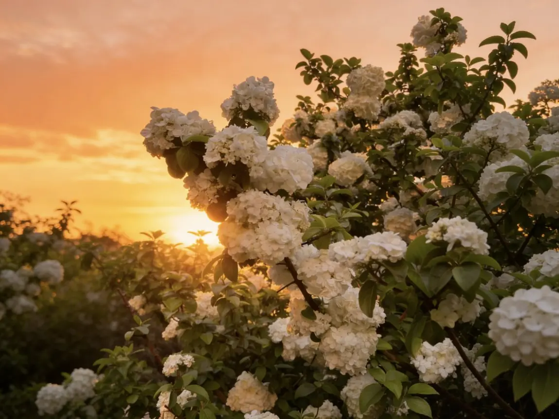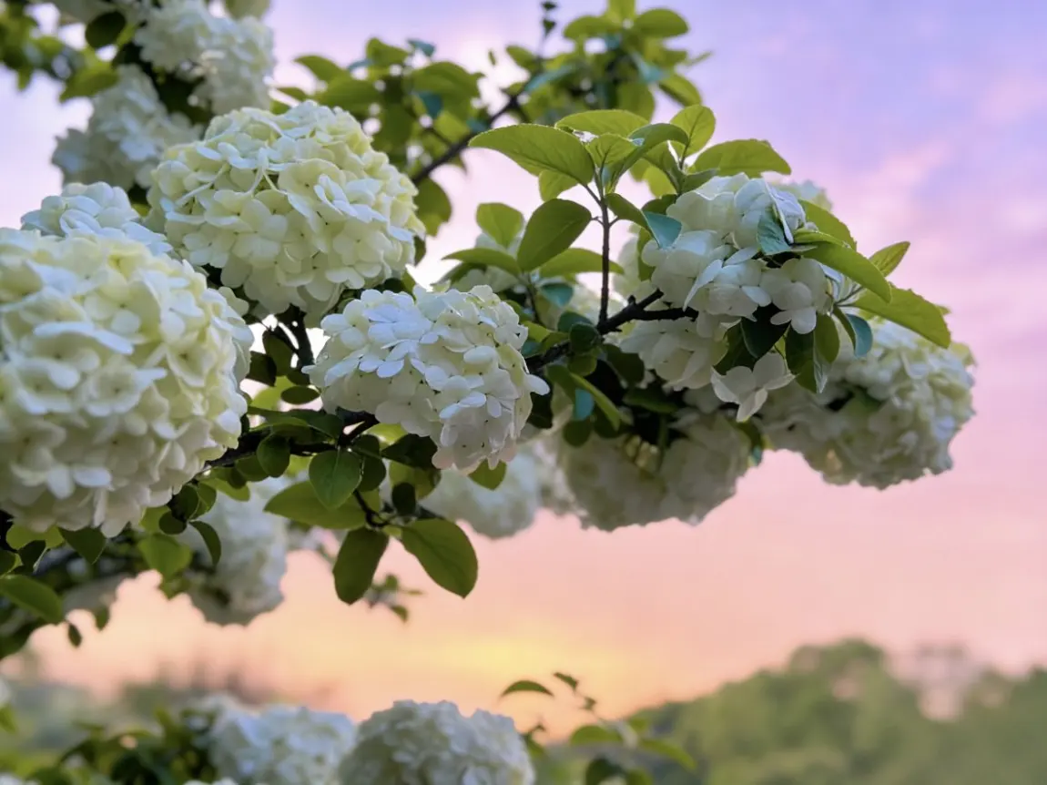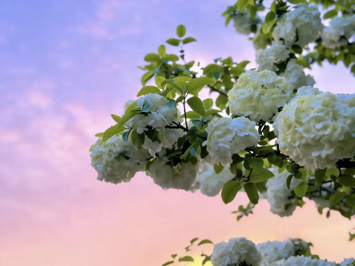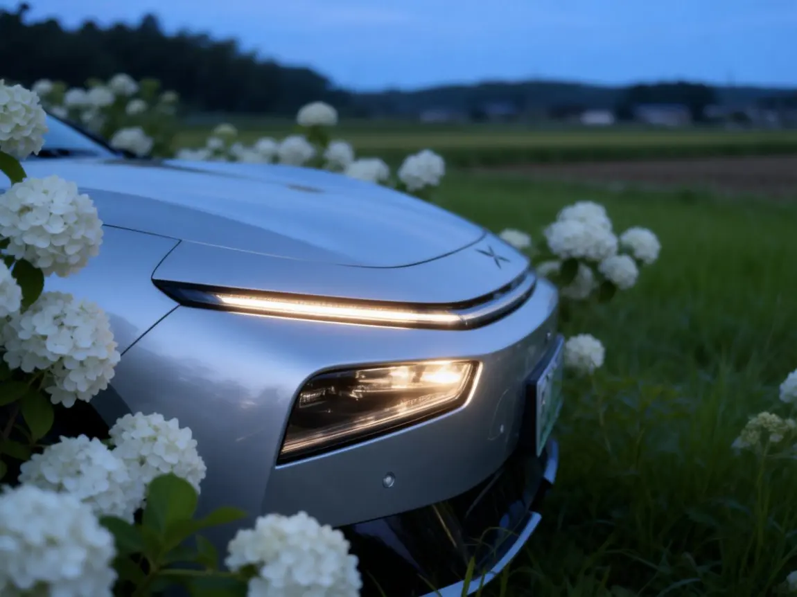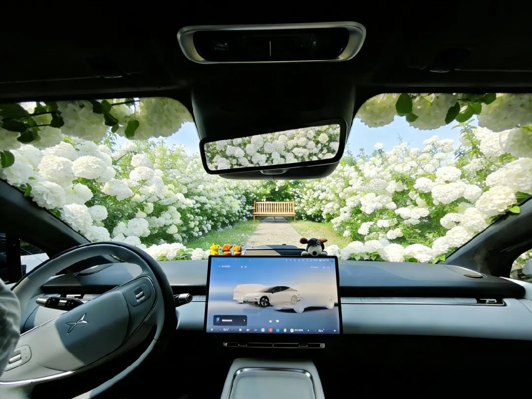 我的小鹏P7+和这片白色绣球花也太搭了吧!
