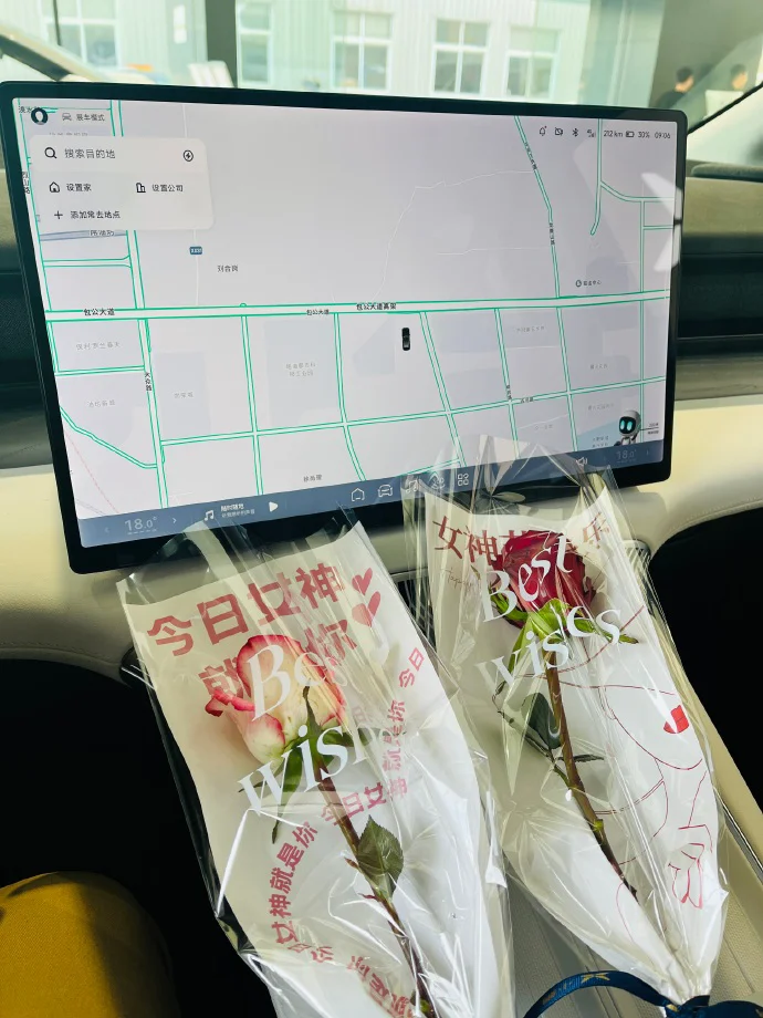 把花放进车内的一瞬间,整个座舱的氛围感立刻就不一样了。X9的极简内饰成了鲜花最好的背景。在这个属于她的日子里,小鹏X9不仅仅是一台代步工具,它更是一间流动的“浪漫放映厅”。