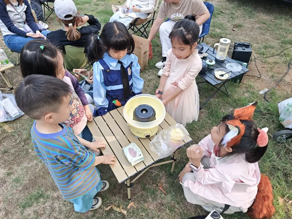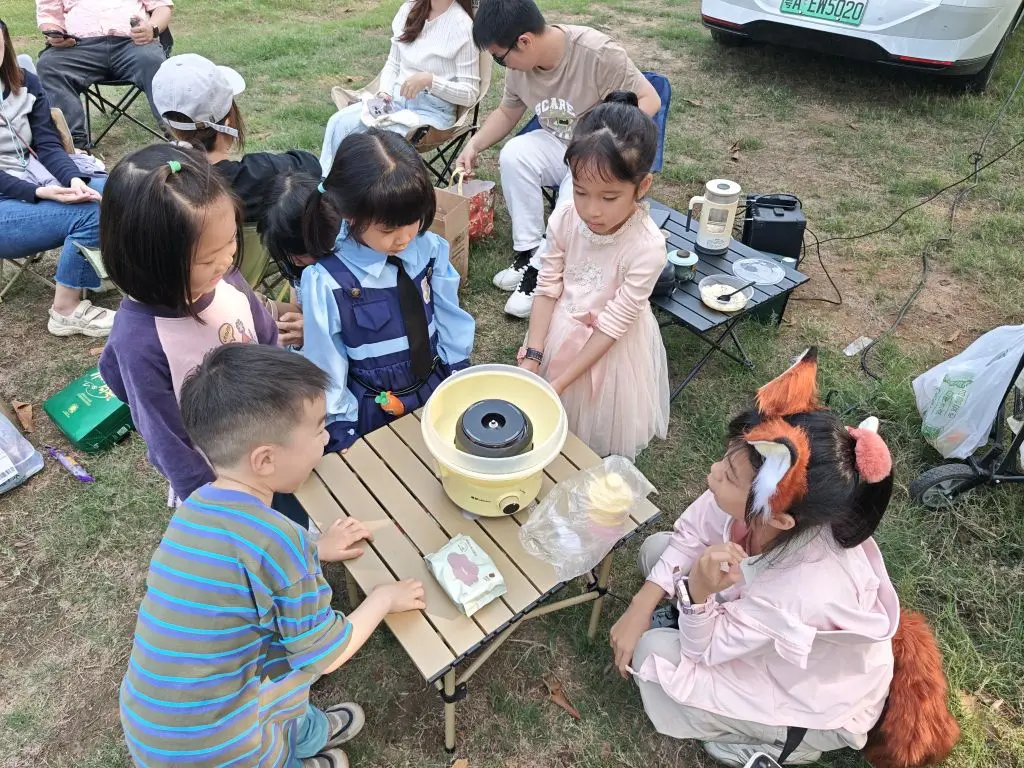 安排上音箱,麦克风,吉他,电烤炉,烧水壶,棉花糖机,大人小朋友都能享受到这春日的暖意。