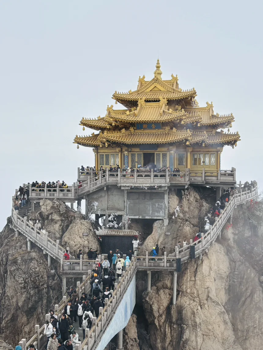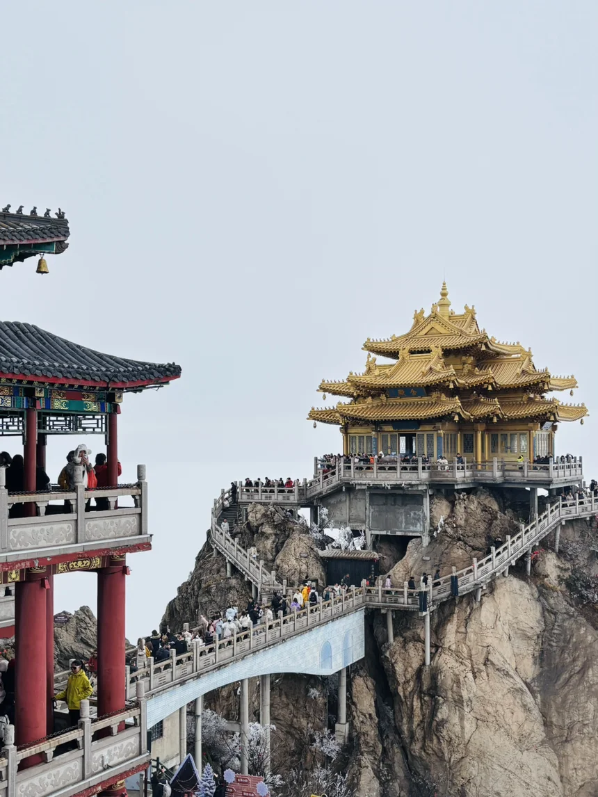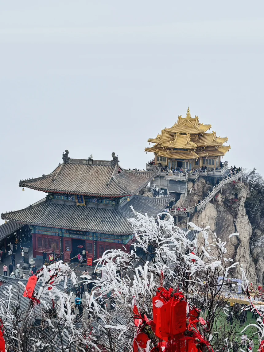 金顶的人流量非常大,老君山的热度一直很高。在山顶趁着风吹散雾气,能清晰的看到几个金殿,还是非常漂亮的,听说晚上开灯的时候会更加震撼。