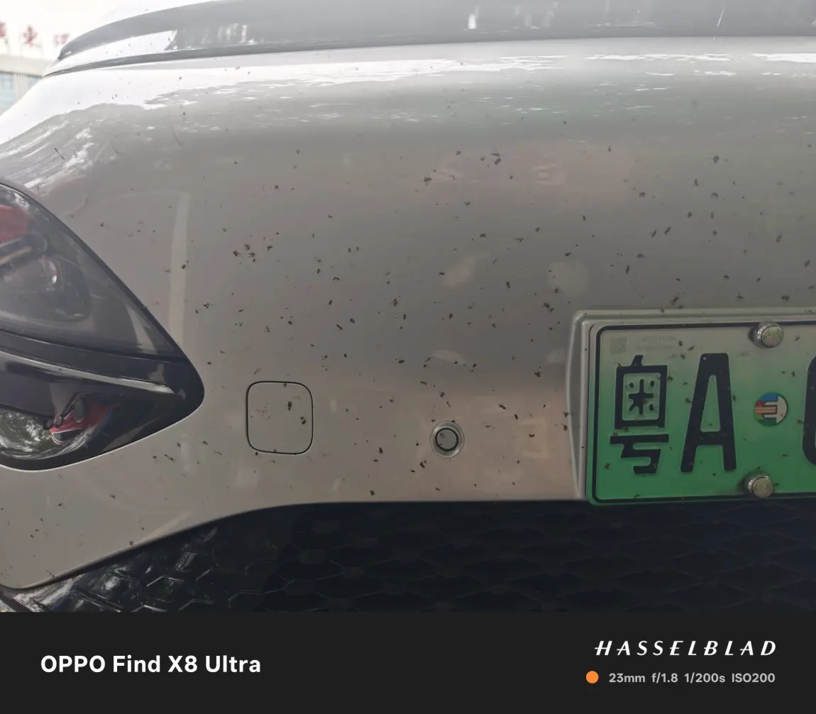4.会因早晚与飞虫来个激情碰撞,往往激情过后,车头前挡,甚至激光雷达上,留下了飞虫的残躯之身。
