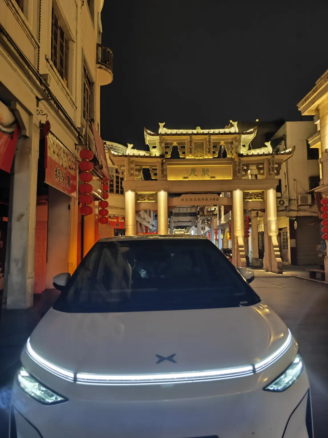 大白夜闯牌坊街:大白与状元牌坊 同框。