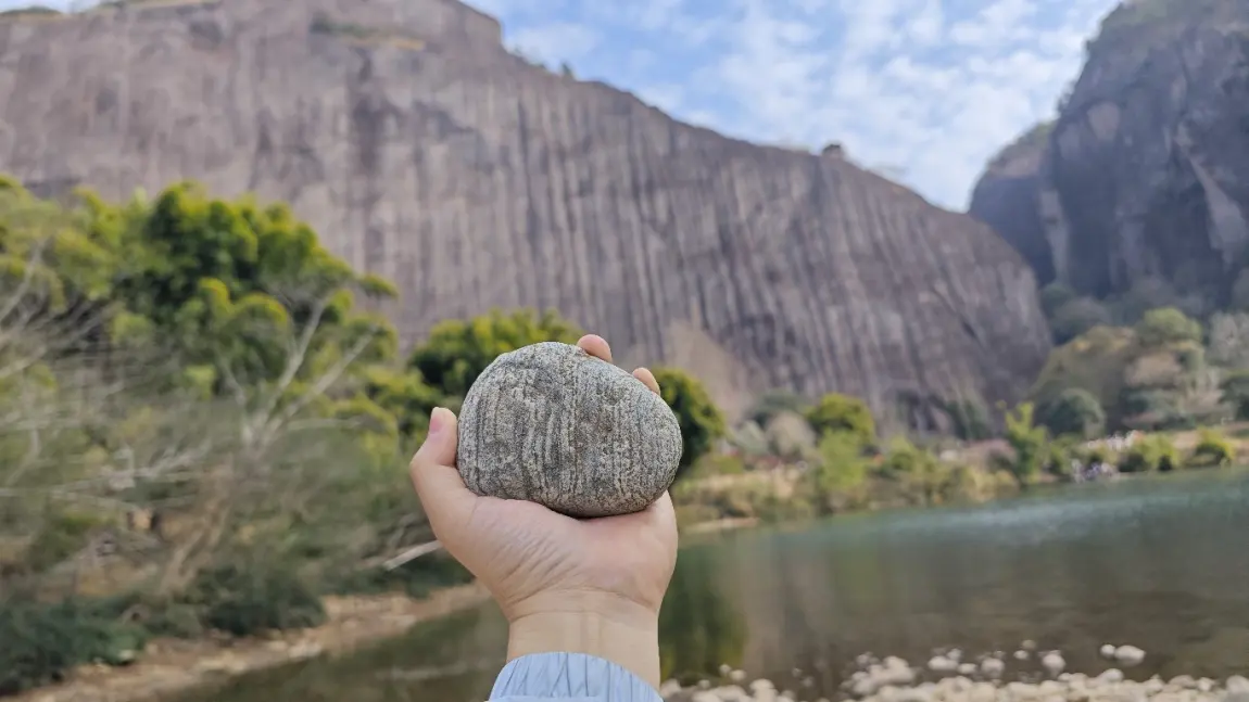 远处的山,手中的石。