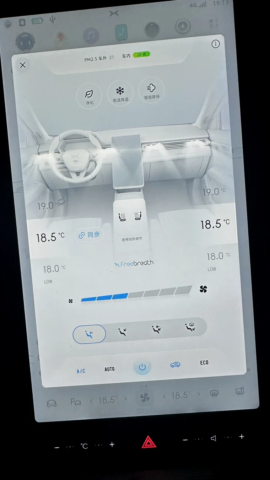 随着户外的温度升高,我个人又是怕热的,在这中午下午温度在30°左右的时候,为了减少空调能耗的提升,我会上车前打开车窗通风,然后再上车,首先打开空调三档,在行驶过程中呼叫,你好小p,空调调成二档,经过实践,车内空调冷风状态下,二档要比三挡省电,还有就是空调不需要开到最低档low. 控制在18. 5度就可以。空调开启后,使用内循环,空调能耗小。