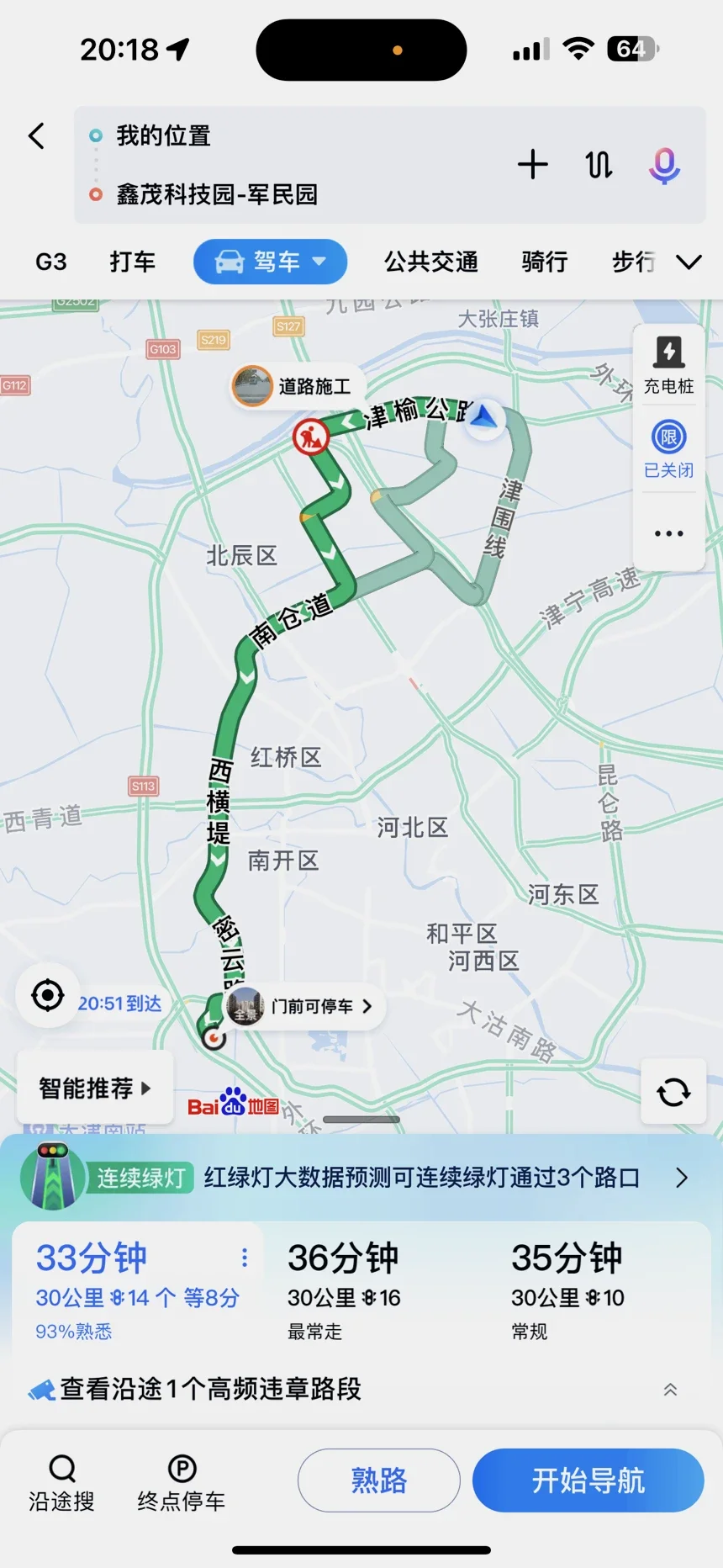 我每天通勤距离为30公里左右,14个红绿灯,经过几个月的观察和分析,在行驶过程中,时刻关注车况,利用合理和安全的变道来减少刹车的使用。尽量不要急踩刹车和猛的加速。在越接近红灯时,安全路况下,尽量提早踩刹车。