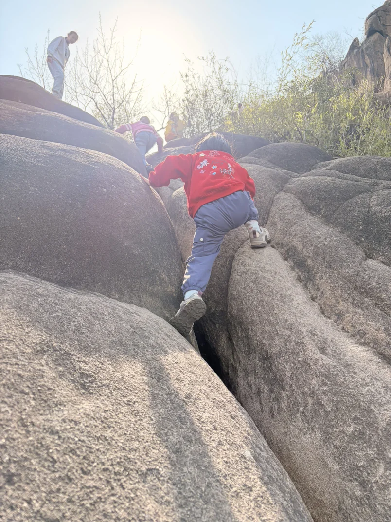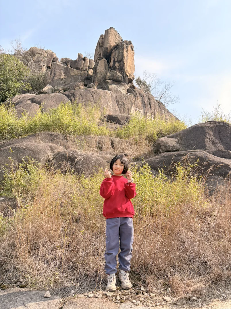 到了山脚,小鹏P7+自动泊车轻松搞定停车🅿️。背上小背包🎒,带上水和零食,我们慢慢沿着山路往上走。孩子一路发现小花🌼、小石头🪨,边走边问问题,像是在探险一样。