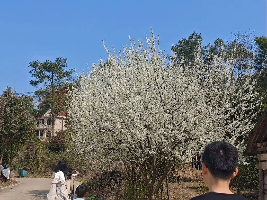 晴日正好,村口的白花开得热烈,满树雪色撞进湛蓝的天里。