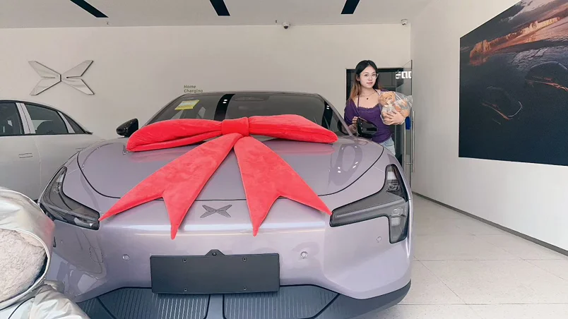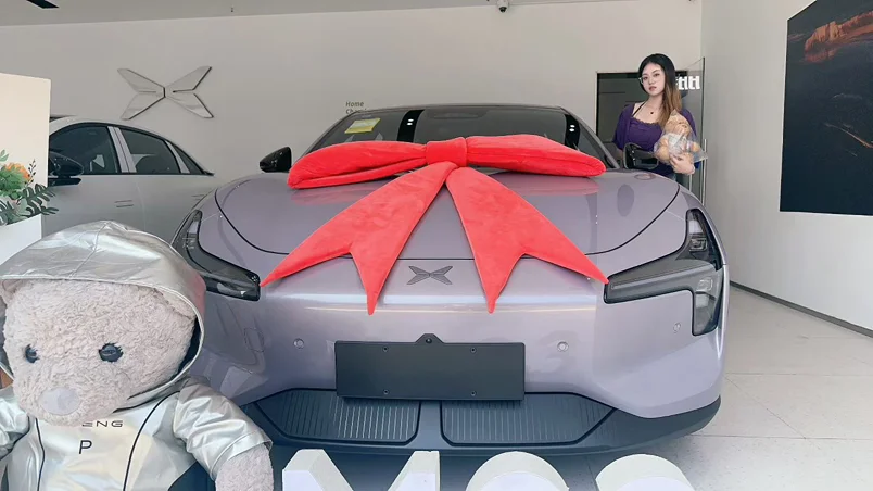 到店后,交付小哥超热情地带着我走流程:先仔细验车,检查车身漆面、轮胎生产日期和车内功能,确认没问题后就开始交资料、选车牌,整个过程高效又顺畅。最让我惊喜的是,店里还布置了满满的提车仪式感——超大的红色蝴蝶结、可爱的太空熊玩偶,还有专门的拍照区,瞬间把幸福感拉满!