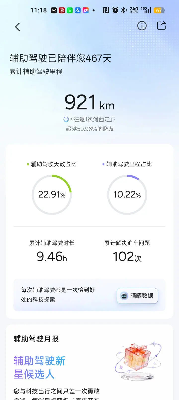 以前很少用辅助驾驶,都是自己开,现在高速上车不多的时候,就打开ACC,让右脚得到放松,同时车速稳定能降低能耗,不会忽快忽慢。