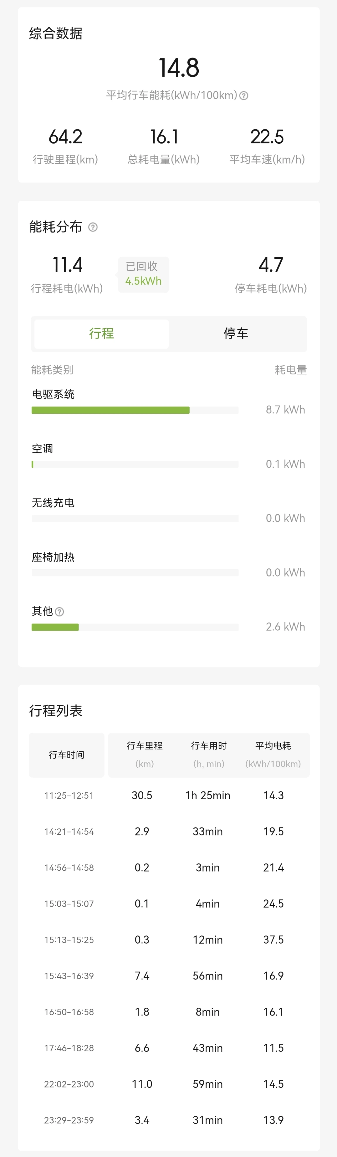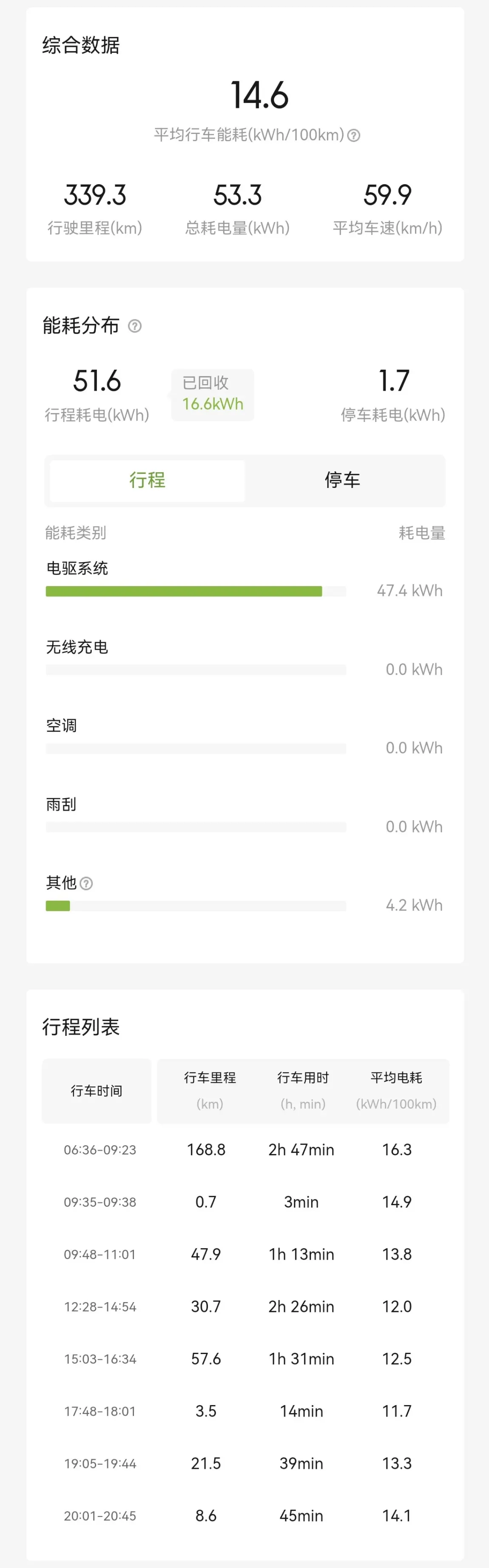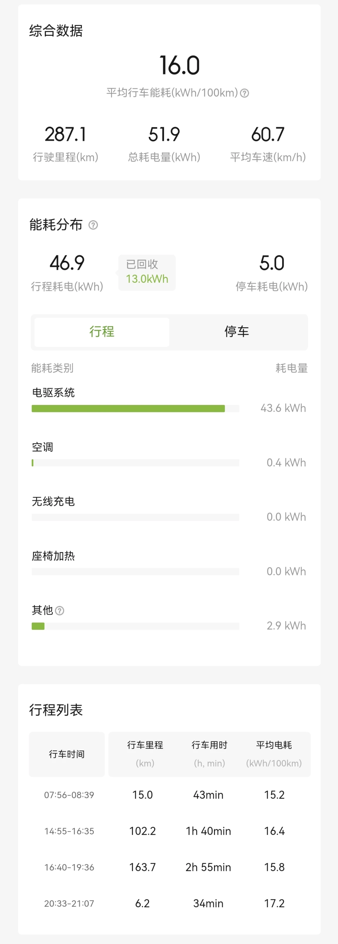 特别说明: 本次行程包含两天晚上在车上过夜(开空调/取暖),以下能耗数据已包含驻车用电,真实还原全家出游场景!