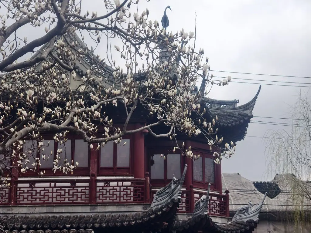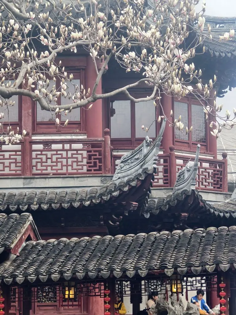 豫园里玉兰花开得正好,白的粉的交相辉映,老人们赏花拍照,老婆忙着给我和爸妈拍合影📸 穿行在桥上,看着满园春色,突然觉得最幸福的事,就是带着最爱的人,一起看最美的风景✨