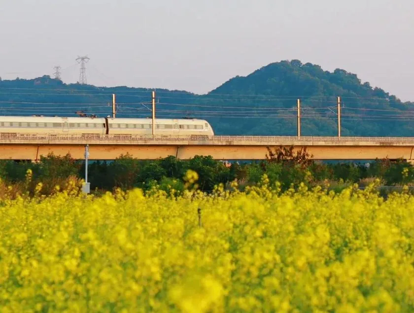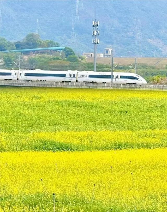 - 高铁花海机位:高架旁蹲守,高铁+花海同框,工业风撞田园风