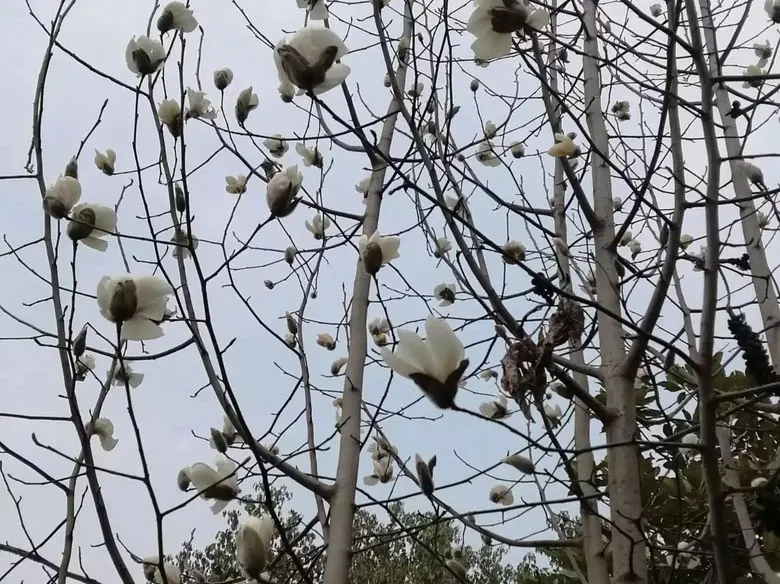 树枝还带着点冬天的硬劲儿,可枝头已经挤满了白花花的花苞,有的刚裂开嘴,花瓣层层叠叠的,远看真像一群停在树上的鸽子。我把车停在路边,熄了火就赖在车里不肯走——空调还暖着,窗外飘着玉兰香,连导航都安静了,就这么坐着发呆,比喝杯热奶茶还舒服。