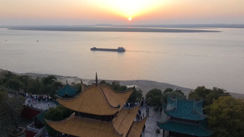 春和景明的岳阳楼下,有几朵玉兰花映衬着暗夜。