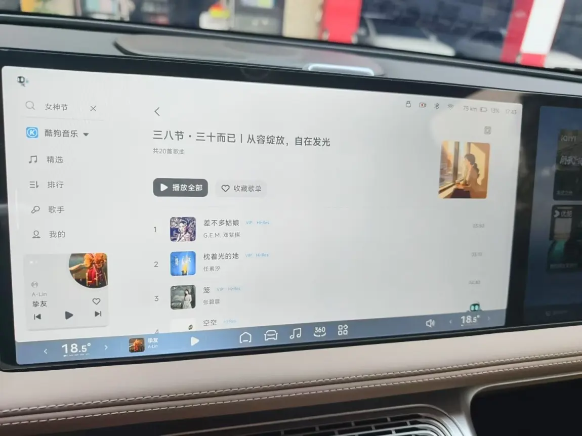 “女神,今天您上车的模样超飒~座椅和氛围灯开始调整,选一首爱听的歌,让音乐陪您一起出发吧~”