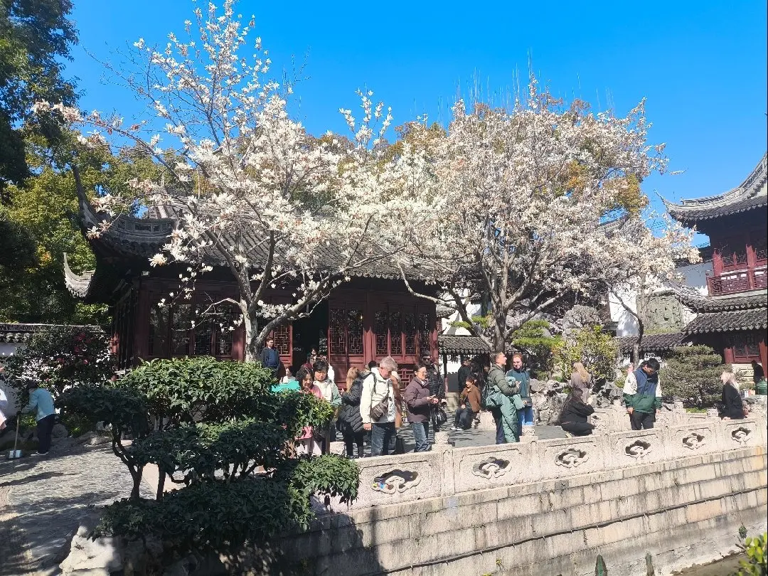 春日的风,总带着温柔的惊喜。在古色古香的园林里,一树树白玉兰悄然绽放,花瓣莹白似雪,缀满枝头,与黛瓦飞檐相映成趣,风一吹,便落满一地温柔,像把春天揉进了眼底。