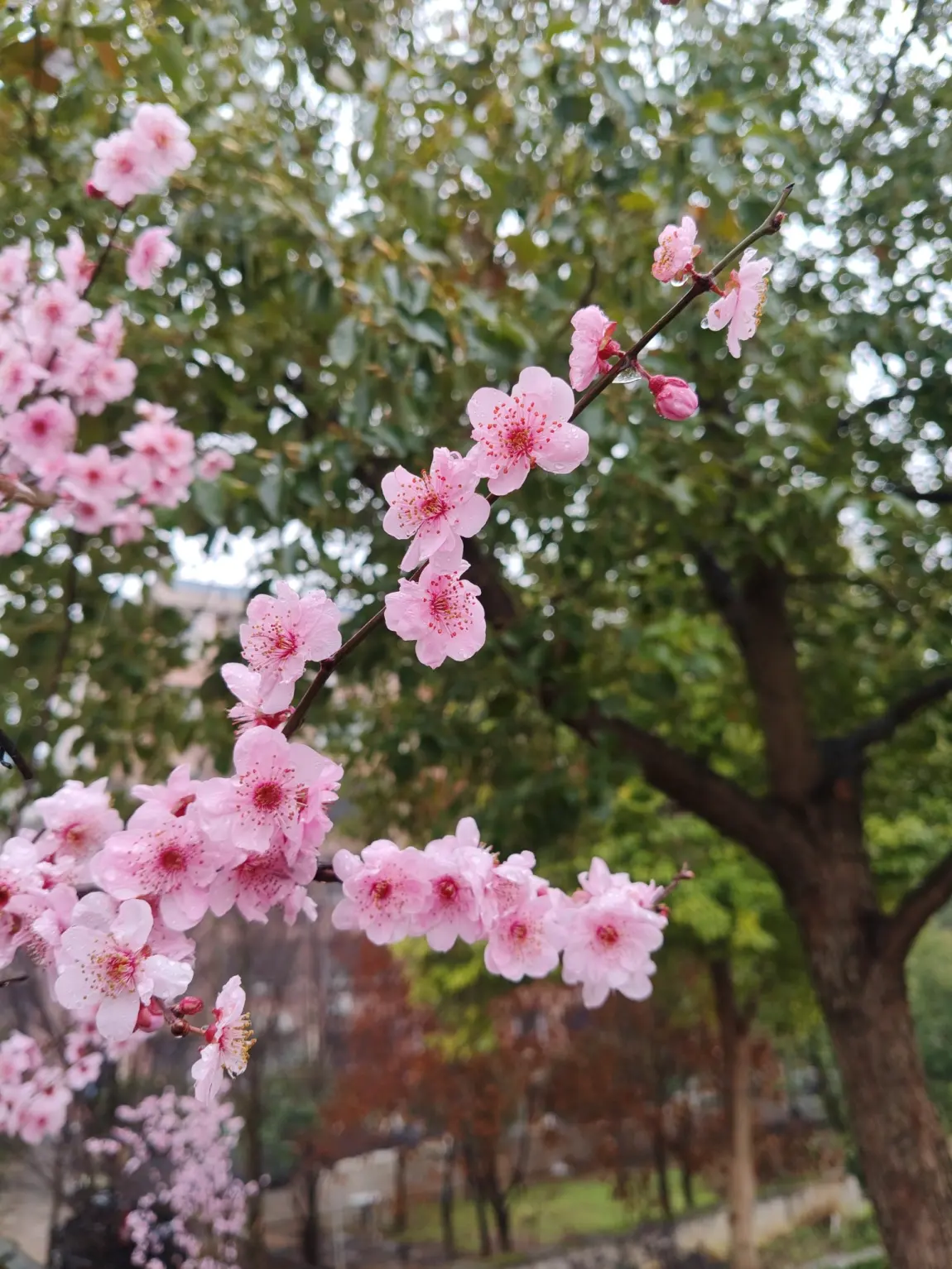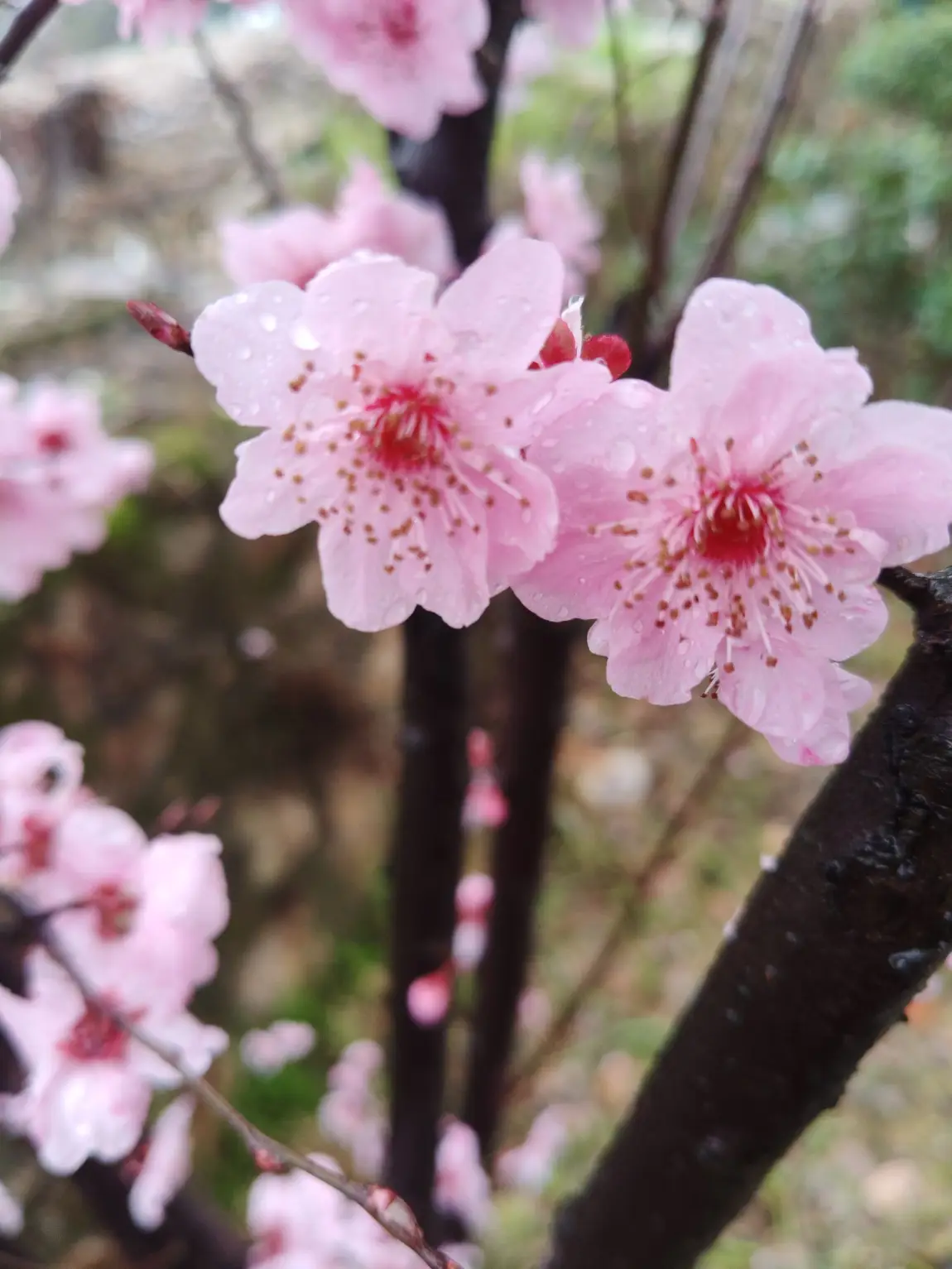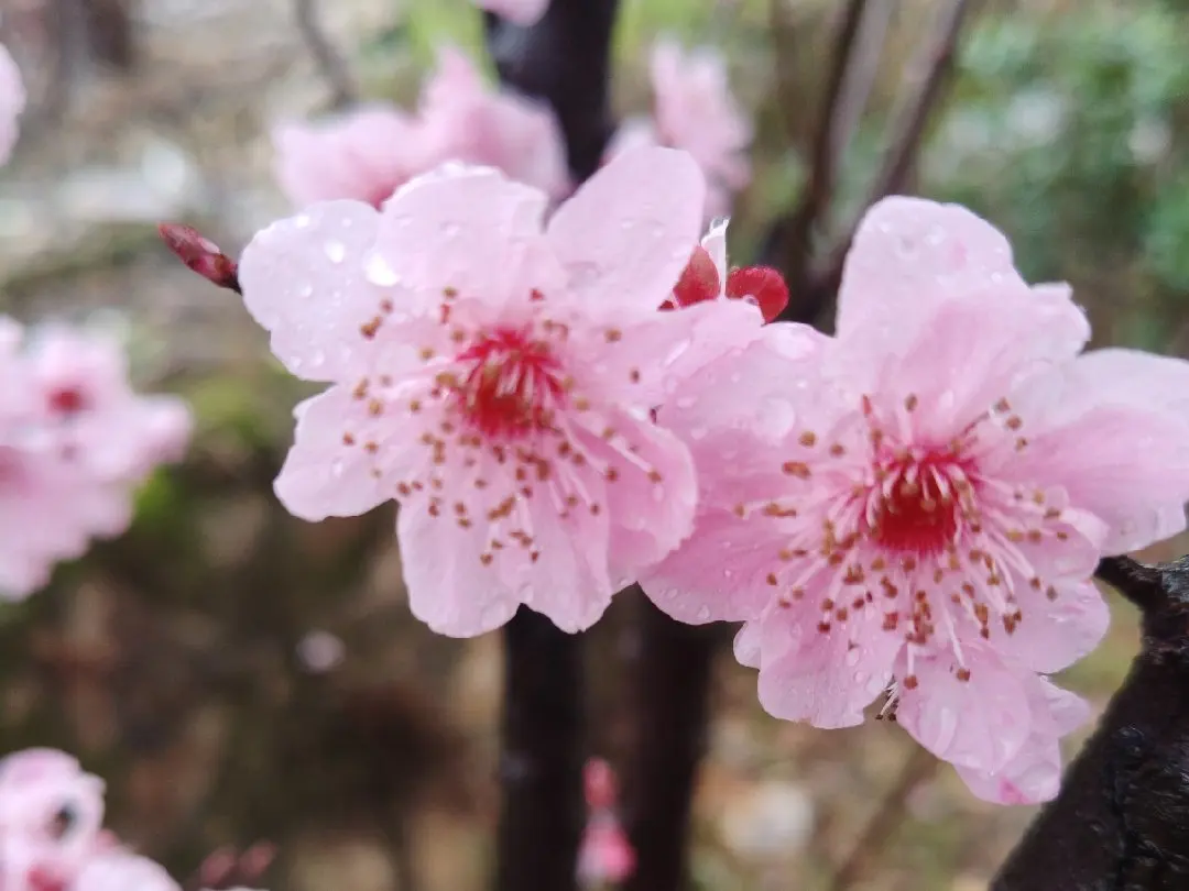 刚踏入田野,清新的泥土气息便扑面而来。路边的草芽已悄悄钻出地面,嫩绿得仿佛能掐出水来。远处的山坡上,粉白的桃花、杏花竞相绽放,像一片片轻柔的云霞落在枝头。走近细看,花瓣上还挂着晶莹的露珠,在阳光下闪烁着微光,宛如撒落的碎钻。