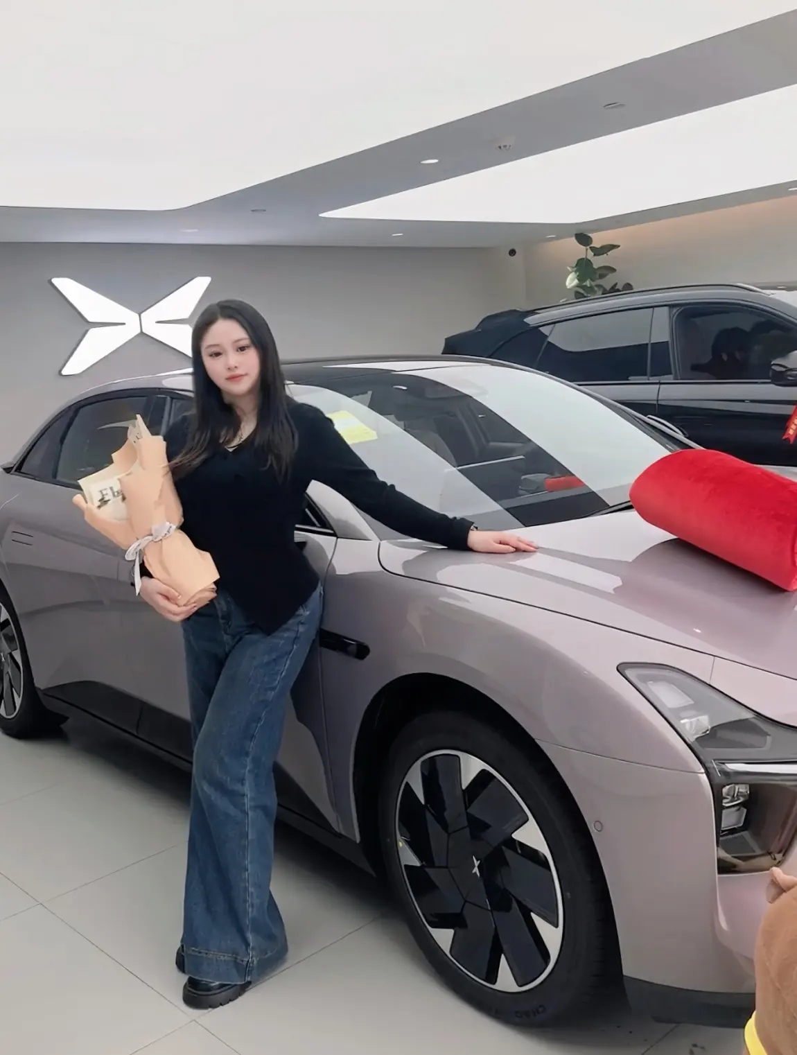 4. 交车拍照:工作人员帮忙拍了好多美照,还送了鲜花、定制小熊和随车礼包,细节超贴心
