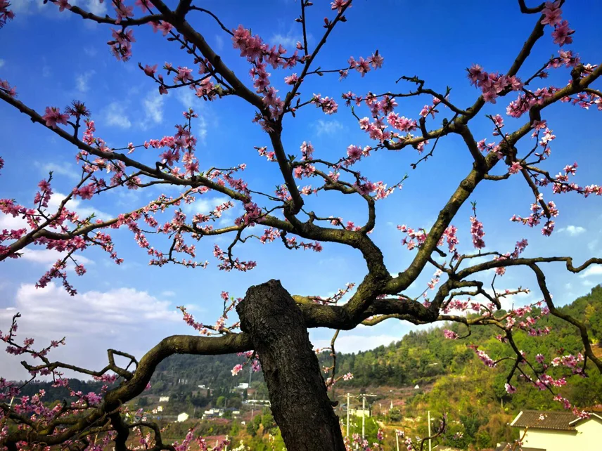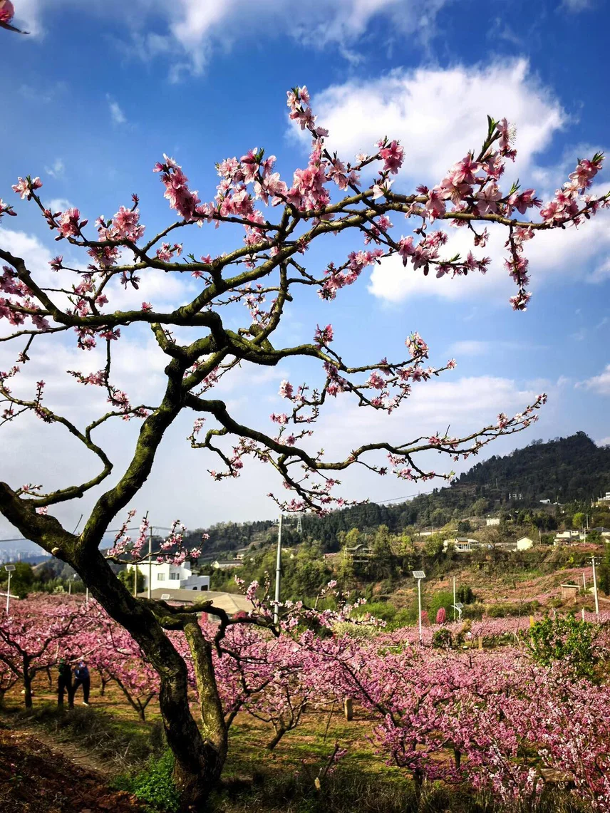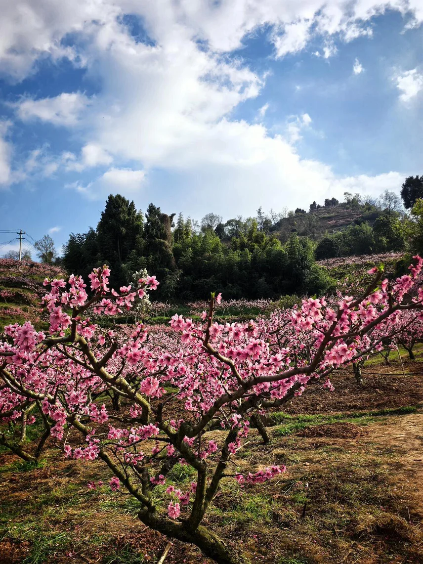 第一次直奔梦里桃乡,公路两边的桃花开得正野。最惊喜的是桃树林里没有黑色塑料膜,照片色调干净得像加了滤镜。