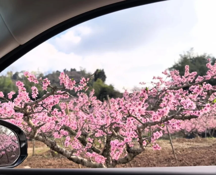 坐在车里透过天幕看花瓣飘落,音响里放着《桃花诺》,那一刻突然懂了什么叫“车内赏花”的浪漫。