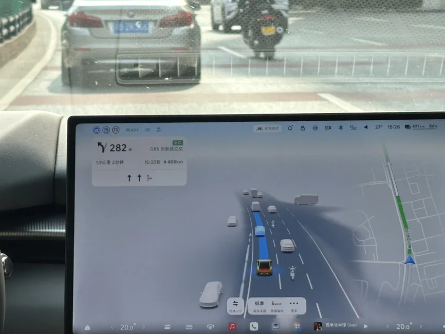 第一感觉是比自己的G7多了漫游模式,试驾路上,新P7的智能驾驶VLA2.0给我的第一感觉就是比我的G7更加的从容且激进,路上基本都是一路在见缝插针般的变道,而且刹车感觉也不会像G7智驾一样时不时给你一脚急刹,在过环岛和掉头弯道时同样稳如老狗