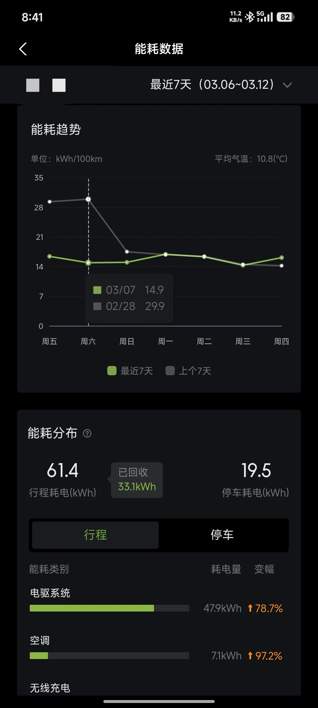 #能耗报告# 冬春季大家应该能体会到,续航比夏天下降了好多,这就不得不让我们想着有哪些方面还能降低功耗来提高续航,第一个就是空调,一种可以把空调关了,另外一种就是把风量降到2档,问题调整到23-24左右,因为温度太高会增加能耗。第二个就是要改变驾驶风格,少一点急加速,急减速。同时把速度维持在80左右。