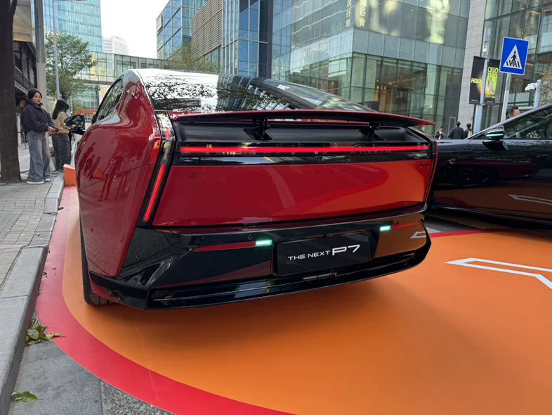 黑色的P7的尾部真的非常的帅气,而且P7的标是红色的,红色的标加上黑色的外观,整体显得非常的贵气。搭配上尾灯更显时尚大气。