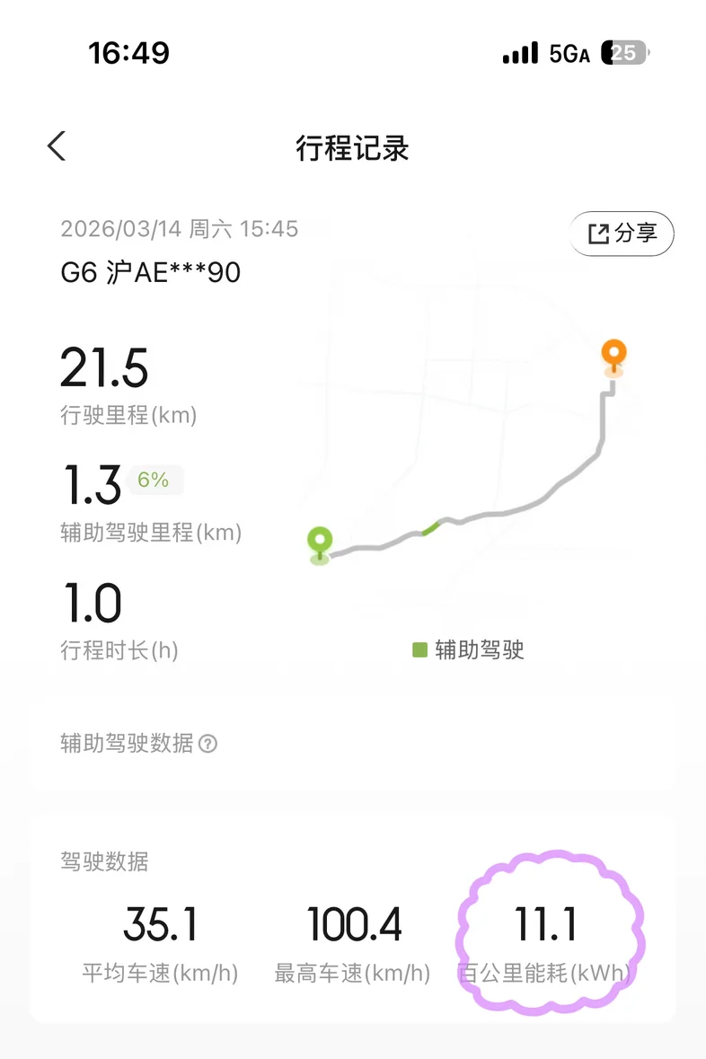 最后,这里也贴出我的小鹏G6的来回系统显示的能耗,去的时候能耗10都不到,电车出行真的减碳节能,为环保♻️做出一份贡献。