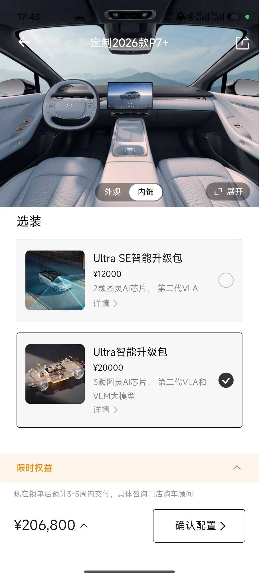 更巧的是,小鹏仿佛精准预判了我的要换成的节奏,3月2日第二代VLA平台发布、3月6日G6增程版紧随上市,一波接一波的新品冲击,让我毫不犹豫再次锁定了小鹏。经过在P7+、G7、G6三款车型的深度试驾、颜值、空间对比后,老婆大人最终选择了2026款小鹏P7+1550Max科技Ultra增程版,虽然钱包大哥不同意把座舱配置上顶配,但Ultra智能包必须要满上!!😍