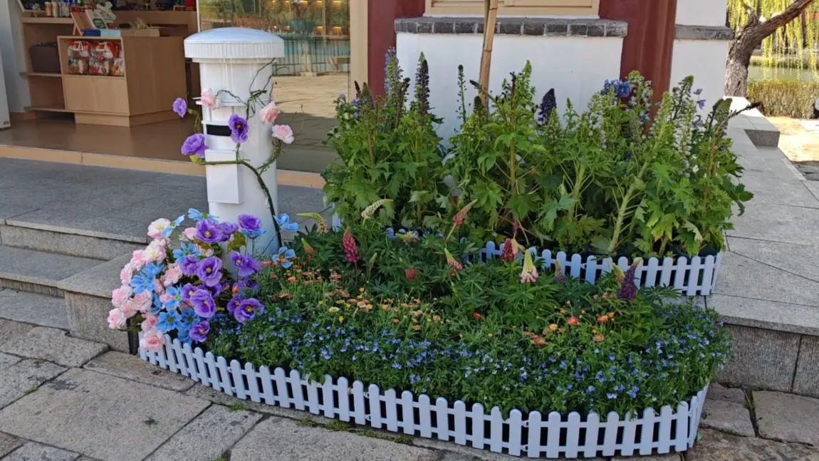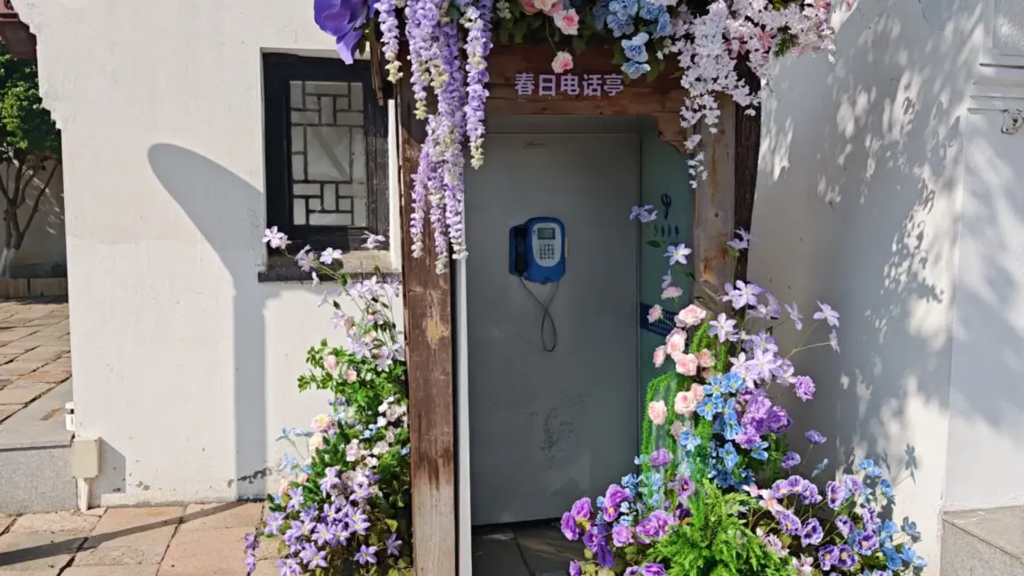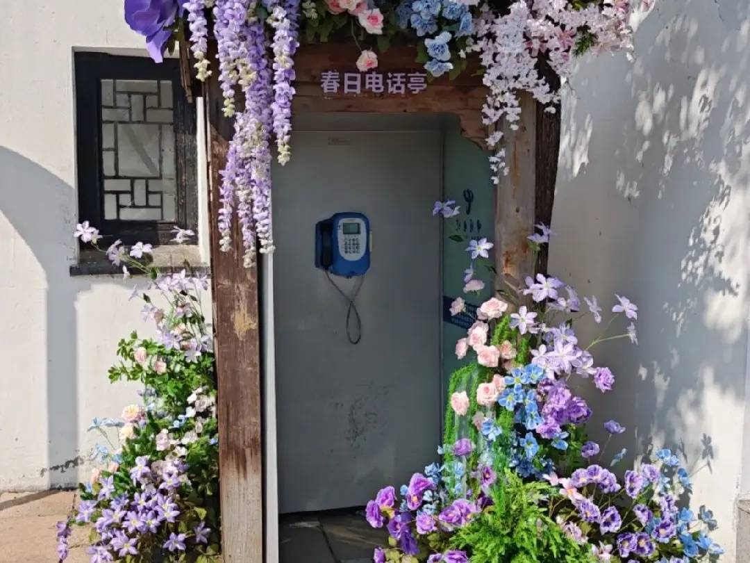 绿椅白篷,蕨草低垂。眼前只有波光、柳影,和对岸安静的屋檐。时间失去了刻度,只有光线的缓慢推移。那座被鲜花完全包裹的“春日电话亭”,像一个从旧日打来的、无人接听却充满芬芳的问候,兀自在阳光下美好着。