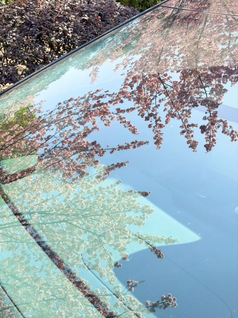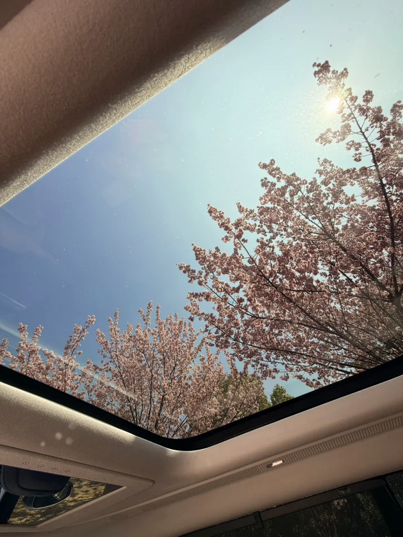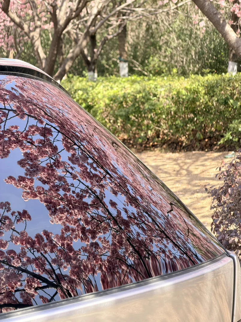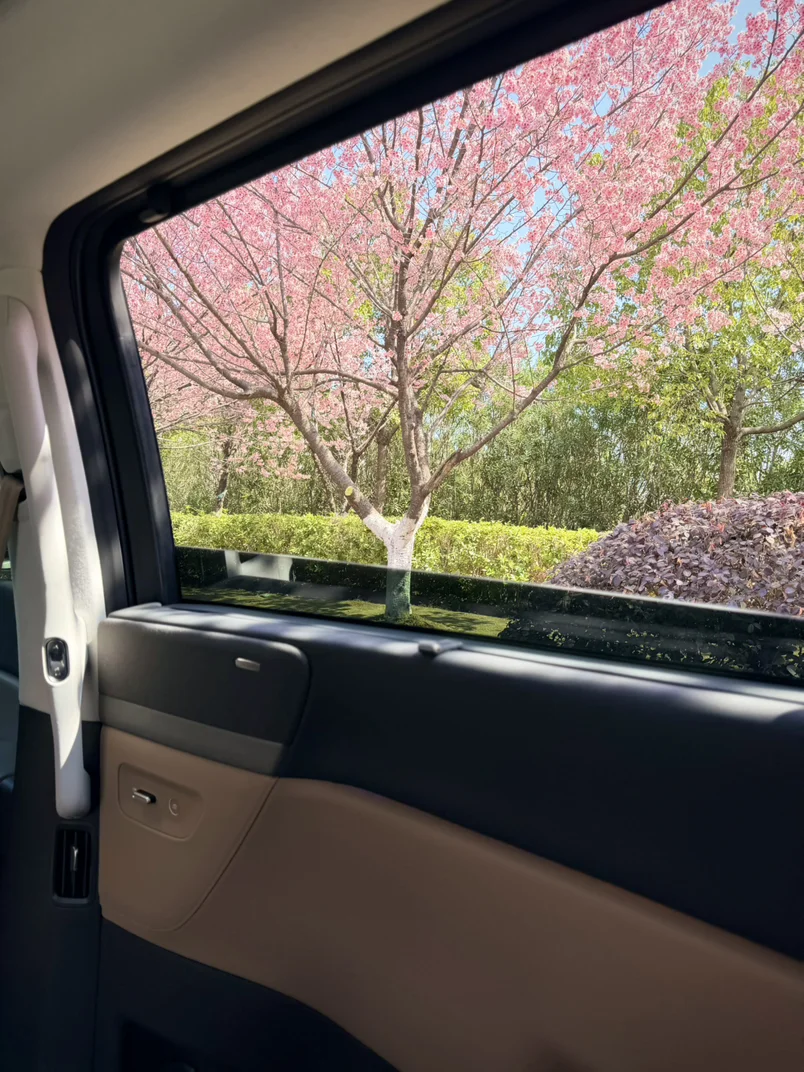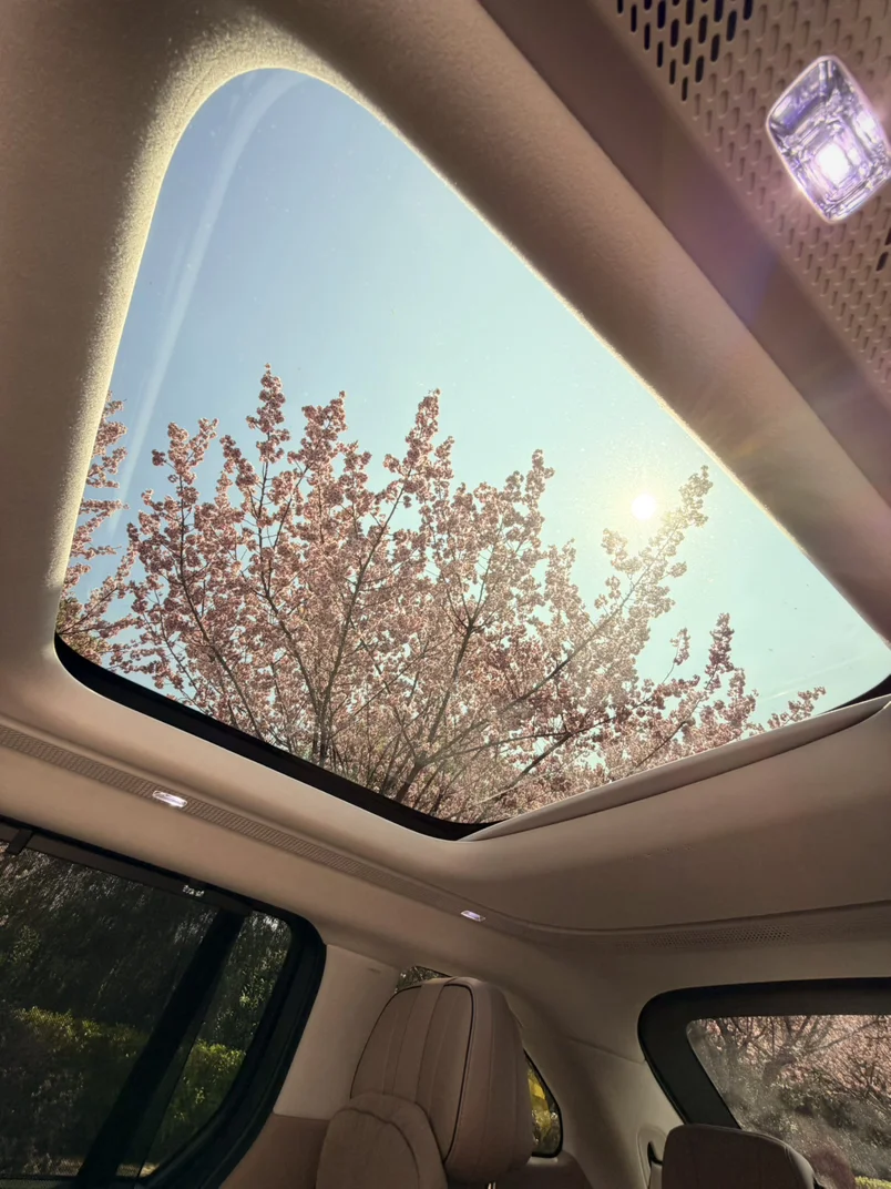 超大的全景天窗来赏花……