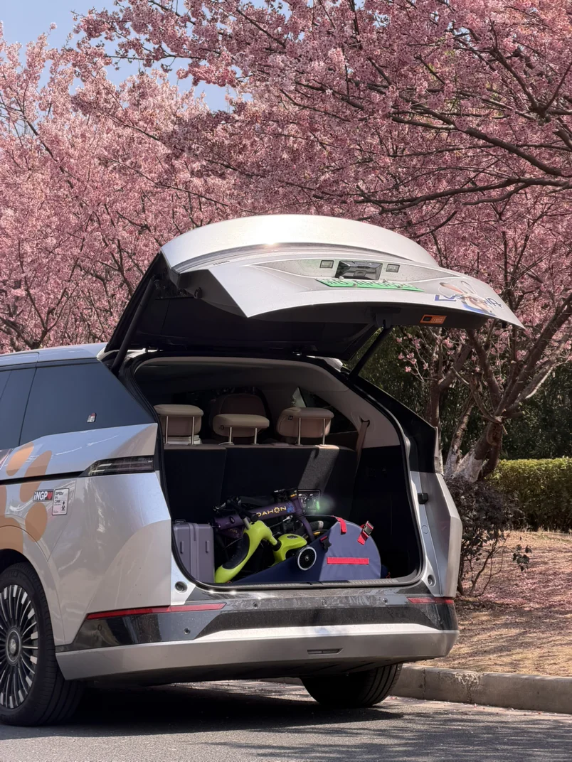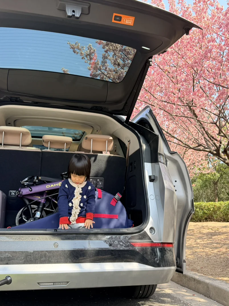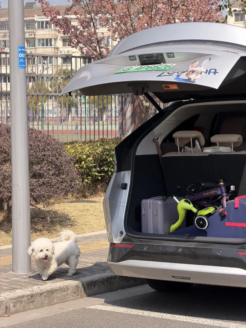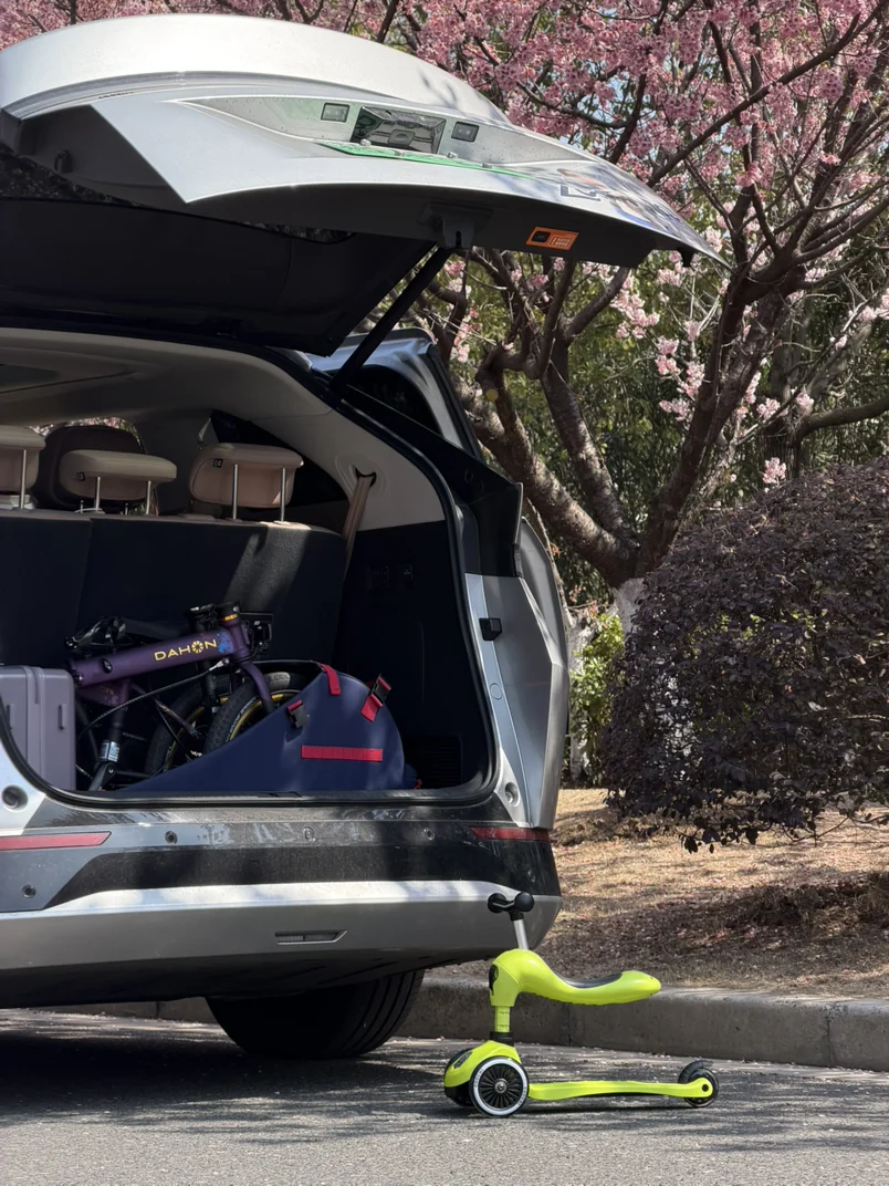 以及后备箱的巨大空间,娃的滑板车,我的大行P8,小鹏新春行李箱,都能轻松放下,甚至还有站下娃自己……