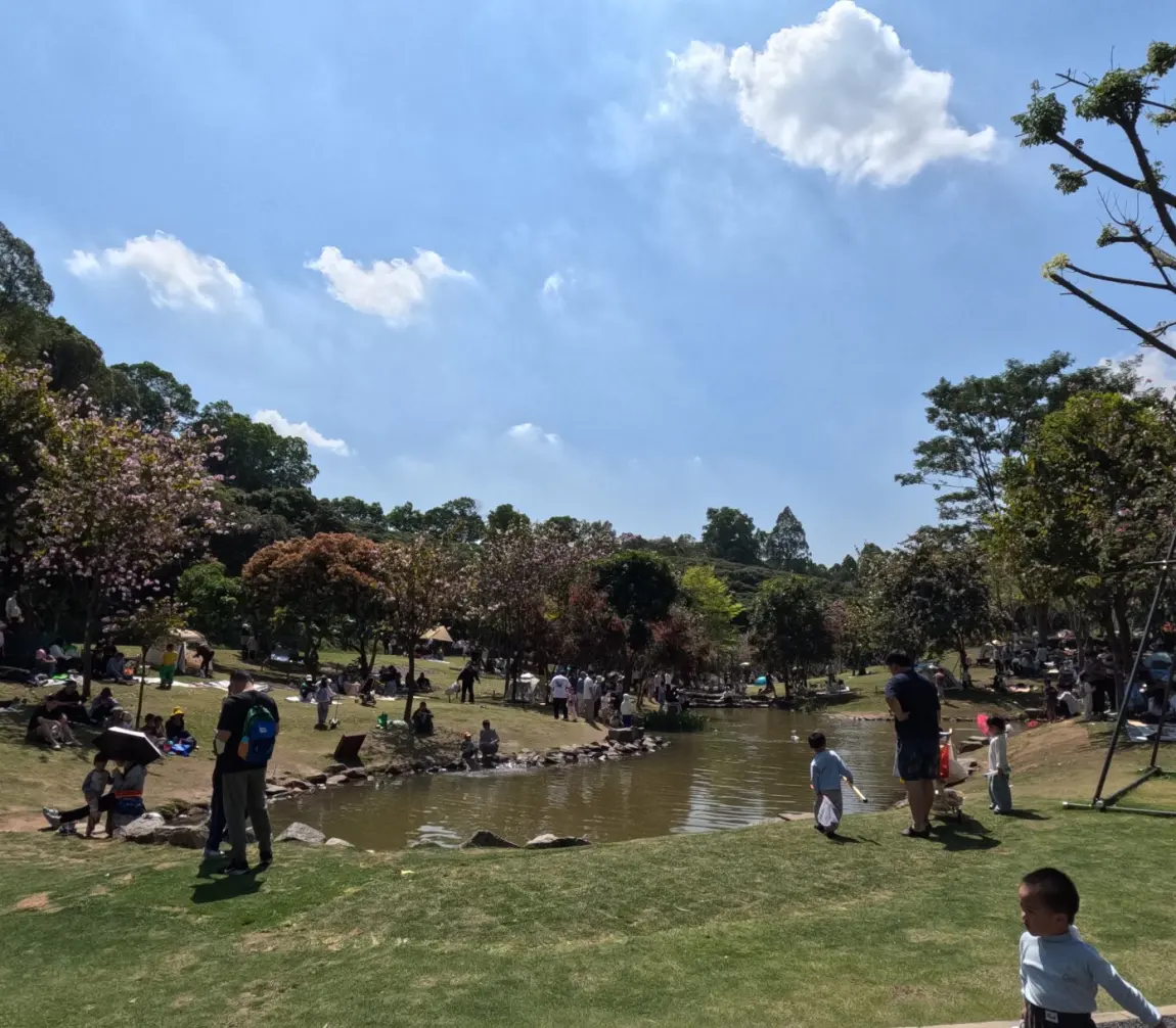 人虽然多,但是地方够大够宽够长。🈶湖🈶花草🌿树木🌲,这里是天然氧吧,🈶徒步平路。