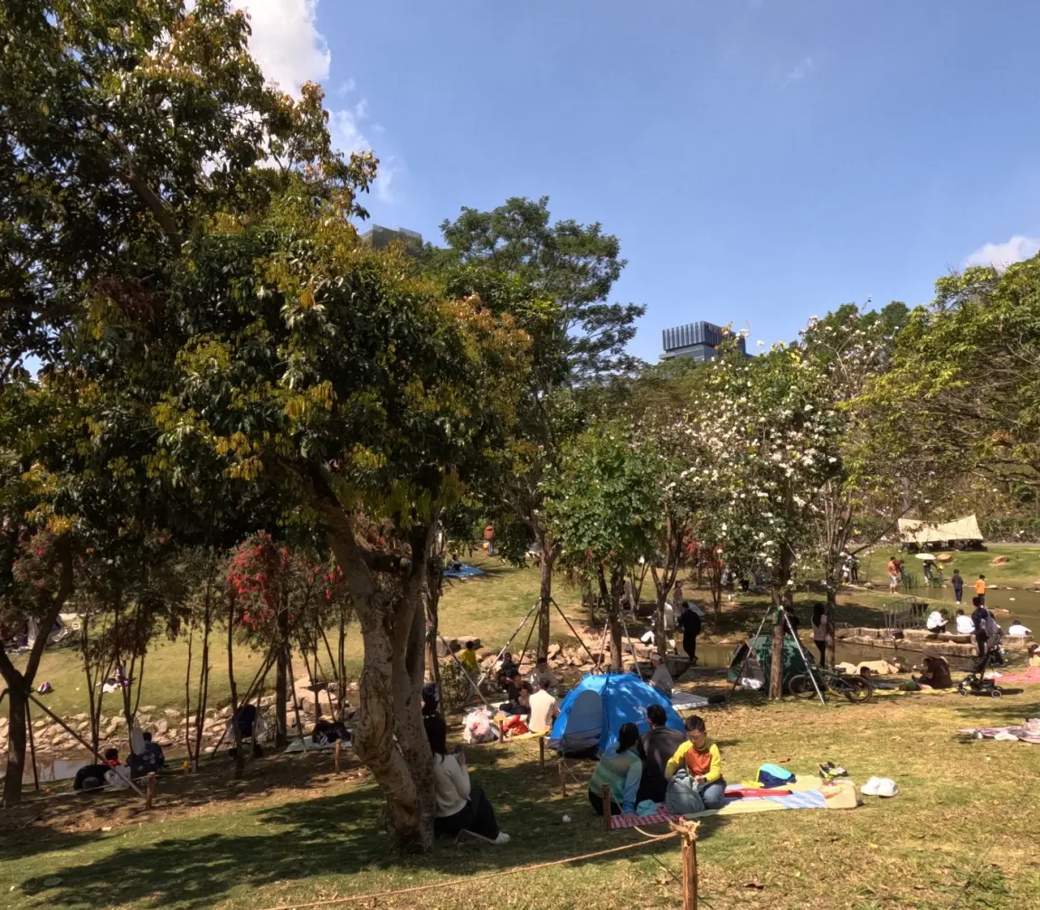 小溪边上就是各位露营🏕️的好地方。有树影,有平地,有花有草,有小水塘有鱼。