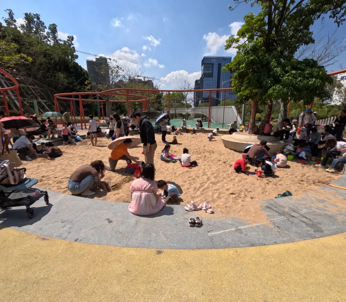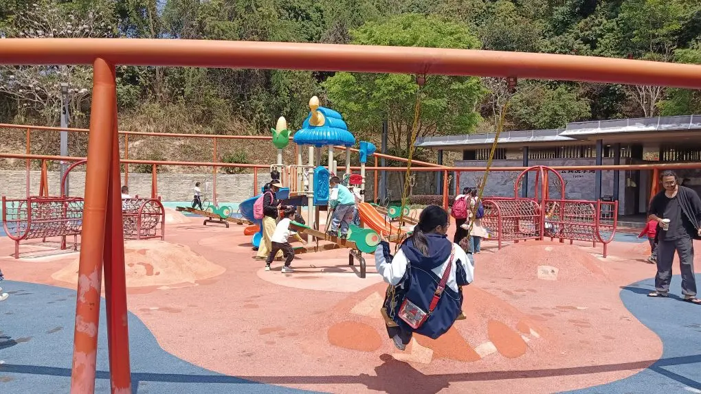 公园内部🈶小孩游乐场,下面是其中一个,荡秋千,滑滑梯,玩泥沙,爬小山。