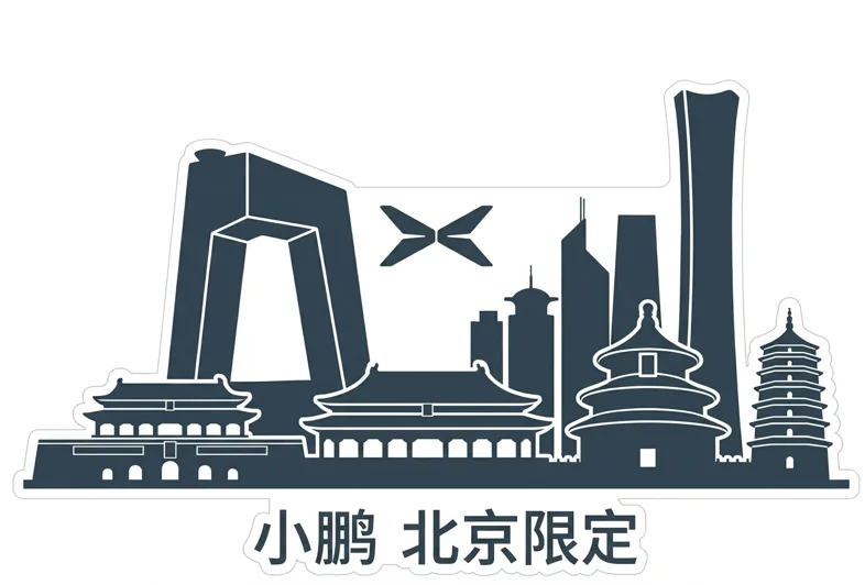 北京版车标贴的设计,核心理念在于“古今对话,智驾京华”,通过极具张力的建筑对比,展现了北京作为千年古都与现代科技中心碰撞出的独特魅力,小鹏车标悬浮在古老建筑与现代摩天大楼之间,寓意品牌是连接历史传承与未来科技的纽带。
