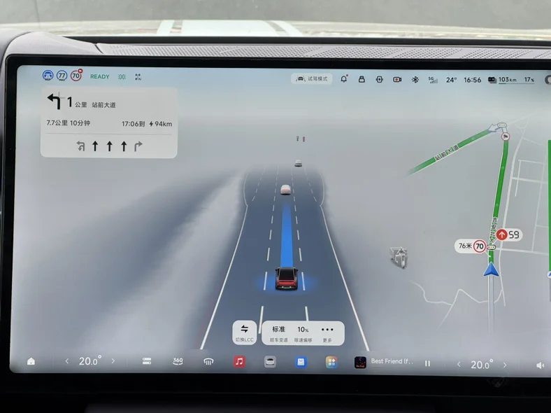 本次行程中,系统高效完成了长距离的智驾覆盖,多次变道、过路口及路段汇入汇出操作,都做得精准且流畅。最直观的感受是顿挫感大幅降低,跟车时的加减速逻辑非常贴近老司机的操作习惯,不会突然急刹或突兀加速,乘坐舒适度直接拉满。科技与实用的融合