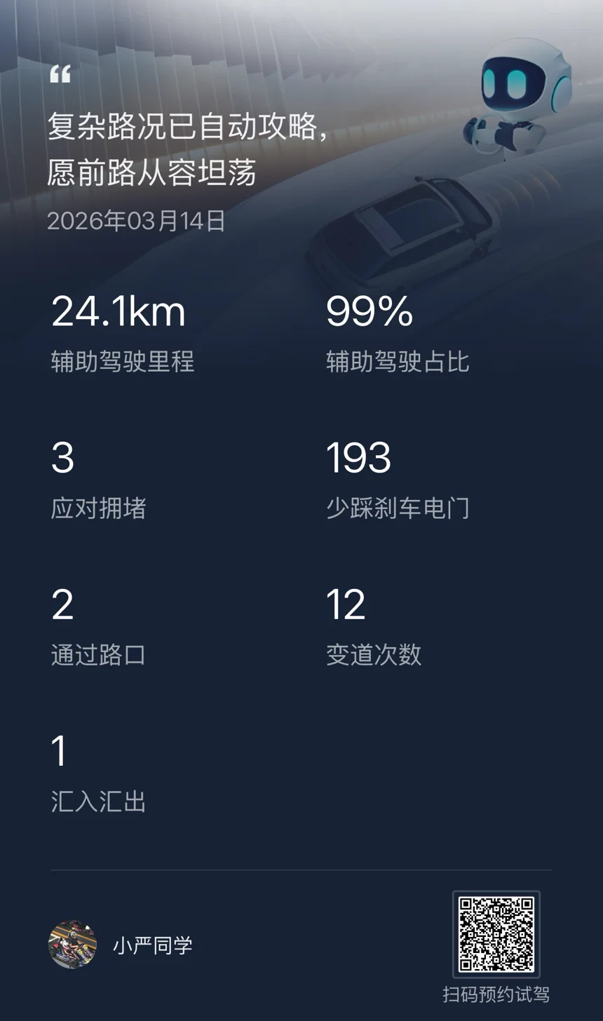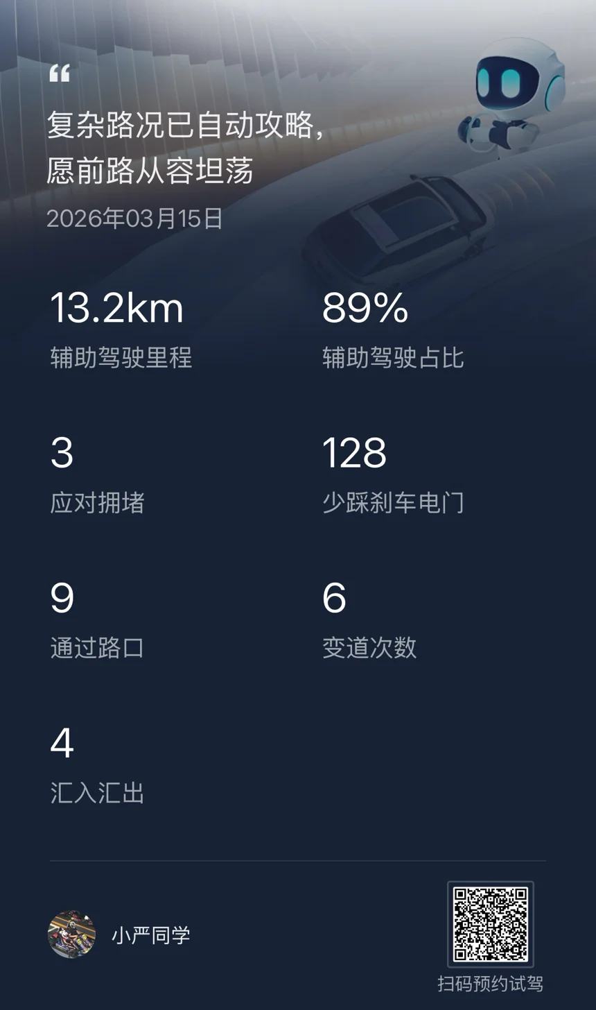 #第二代VLA# 去年小鹏2026款X9上市第一时间就提车了,开了小一万公里了,智驾使用率还是比较高,每天上一班几乎都是智驾通勤,确实让驾驶变得轻松不少。不过总觉得智驾水平还没有达到自己的预期,所以很期待下旬将要推送的第二代VLA,希望不要辜负自己的期望吧,真金白银支持小鹏两台车了。