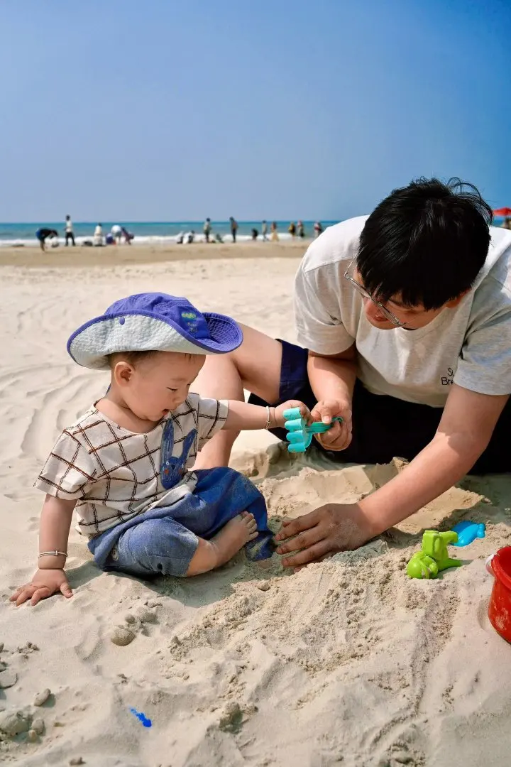 这次主打休闲放松,酒店附近就是天下第一滩:北海银滩,沙子又细又白,太适合小朋友玩耍了,与北方巨大的温差,简直两个世界