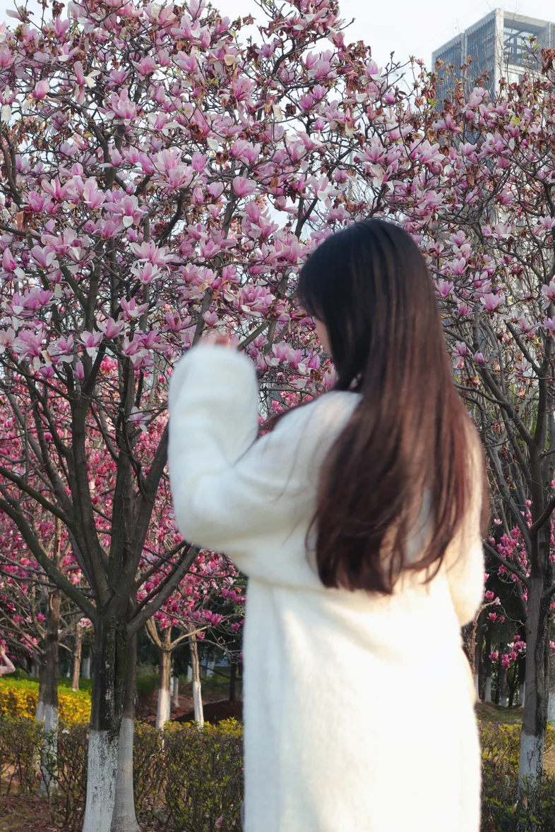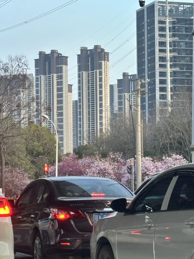 所幸回家路上看到了一小片花林!🌷还没有人,于是我们把车悄咪咪停在路边,下车去拍花🚗