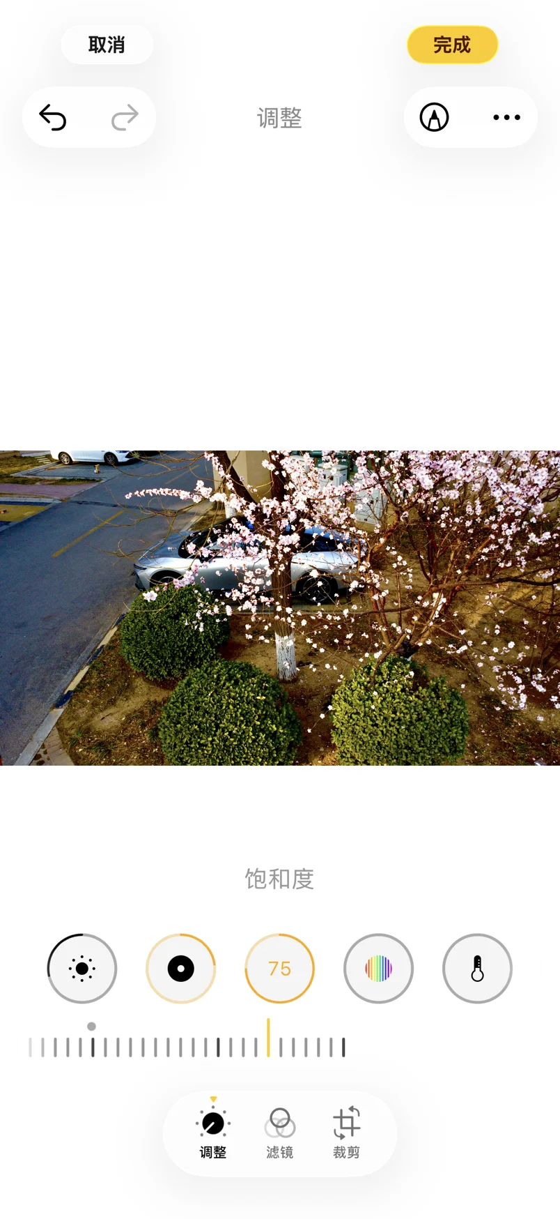 拍了超多美图,不过刚开始看原片的时候还有点小遗憾😅,小区的环境还是不够有春天的气息,车子的质感也没完全拍出来。我发现手机自带的相册编辑功能就超级好用!稍微调一调亮度、饱和度、对比度,颜色立马鲜活起来✨,前后对比简直判若两张图,春日氛围感大片轻松拿捏!📸